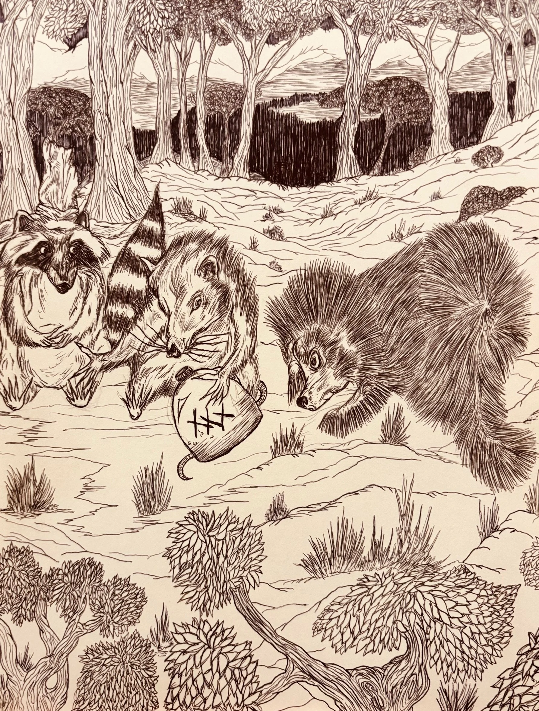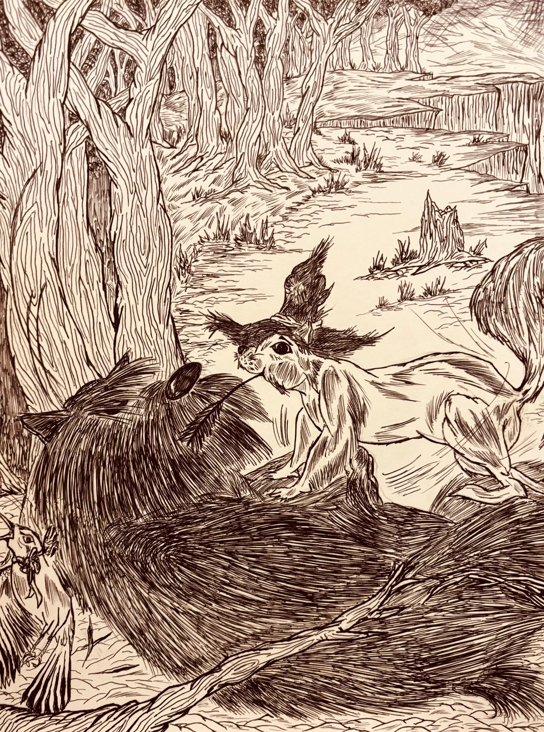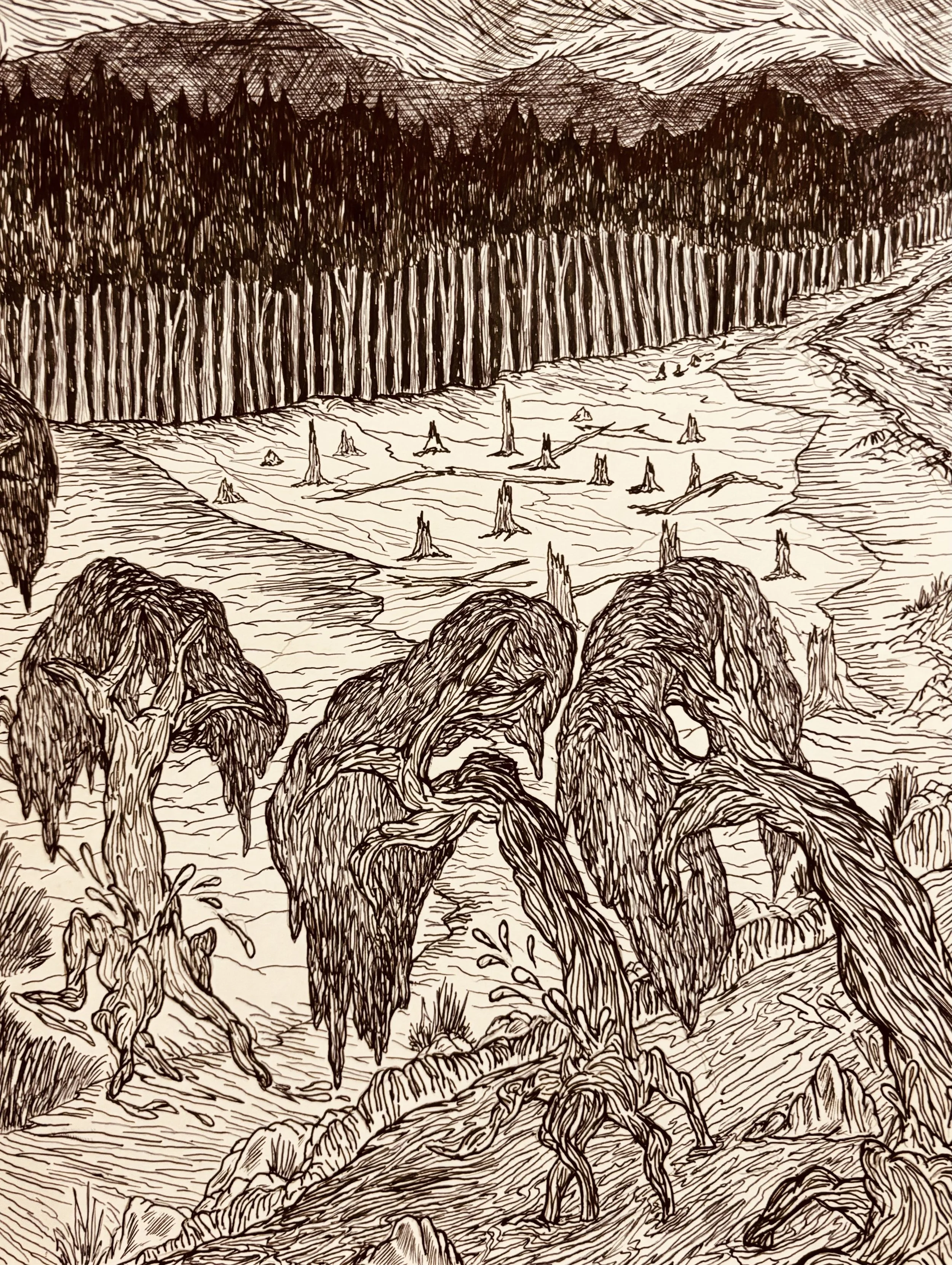 “Tales from the Runt Oak”, Pen/ink, Raymond Pilarczyk