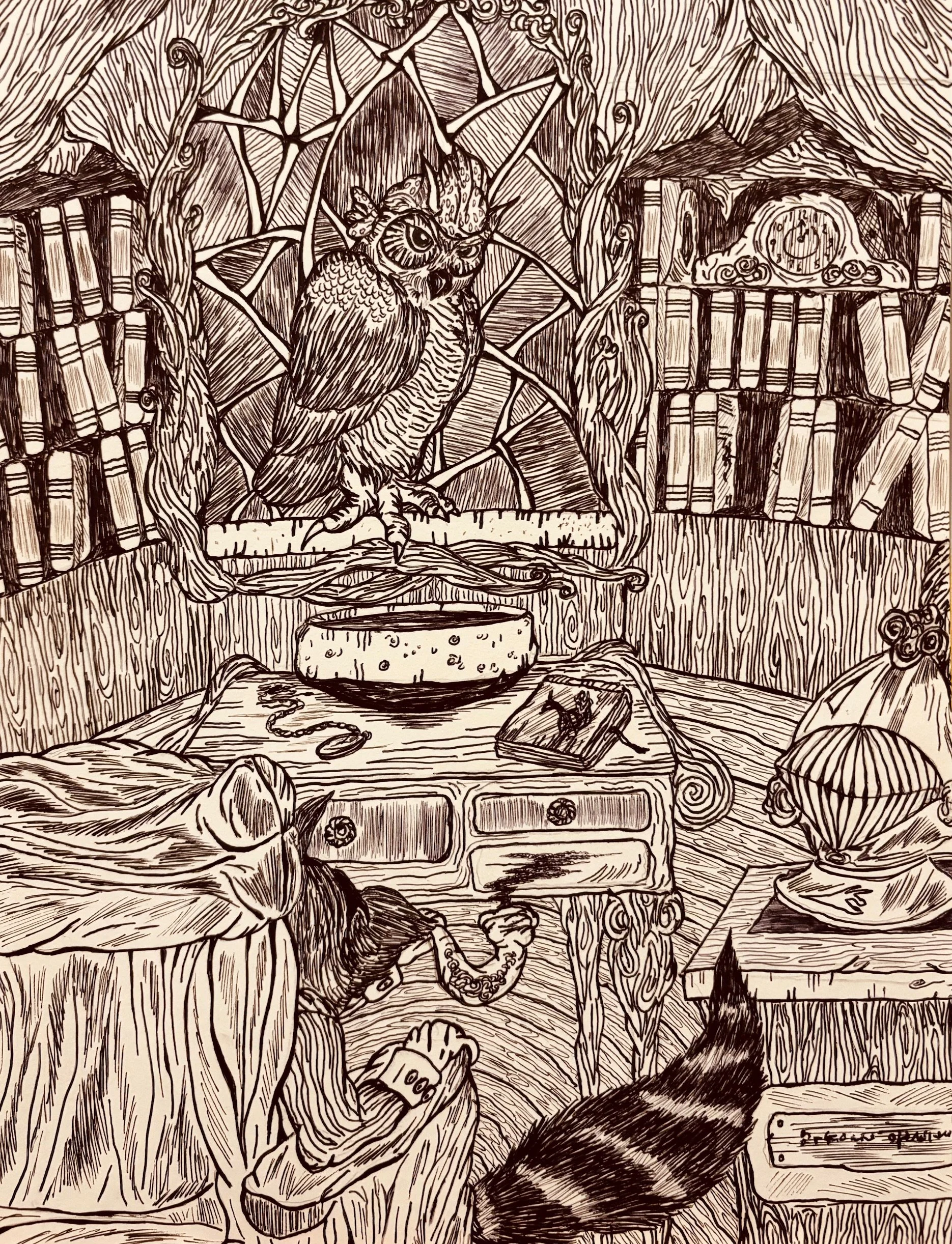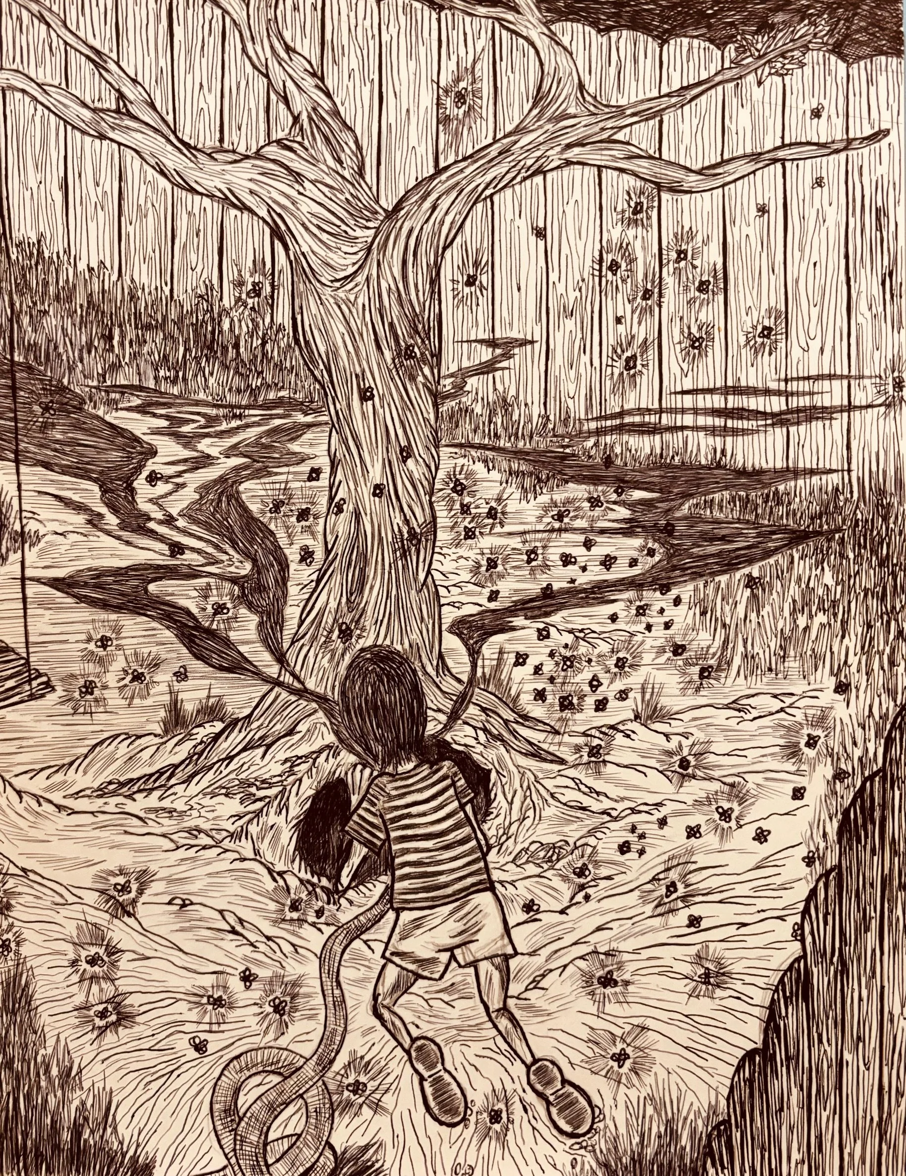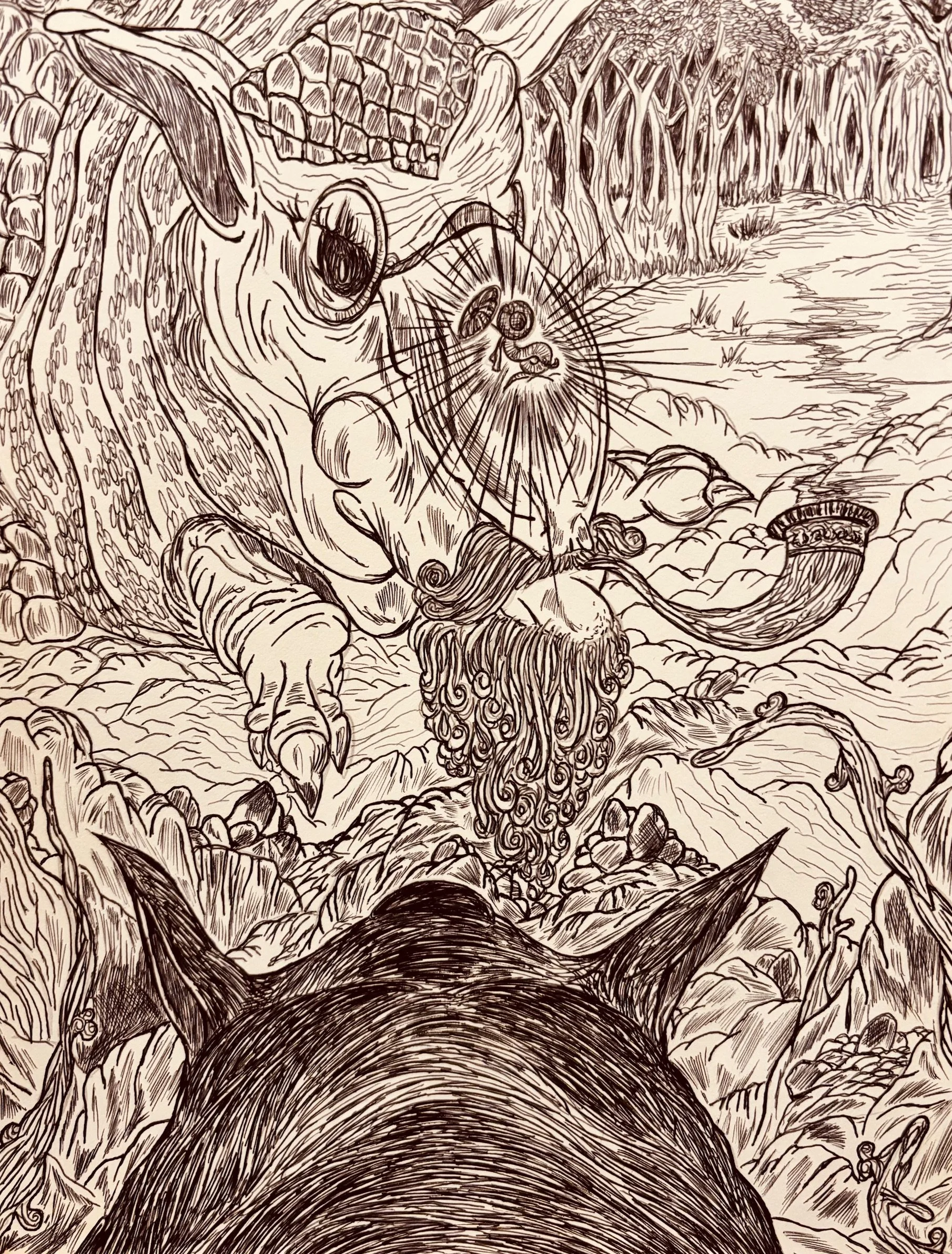 “Tales from the Runt Oak”, Pen/ink, Raymond Pilarczyk