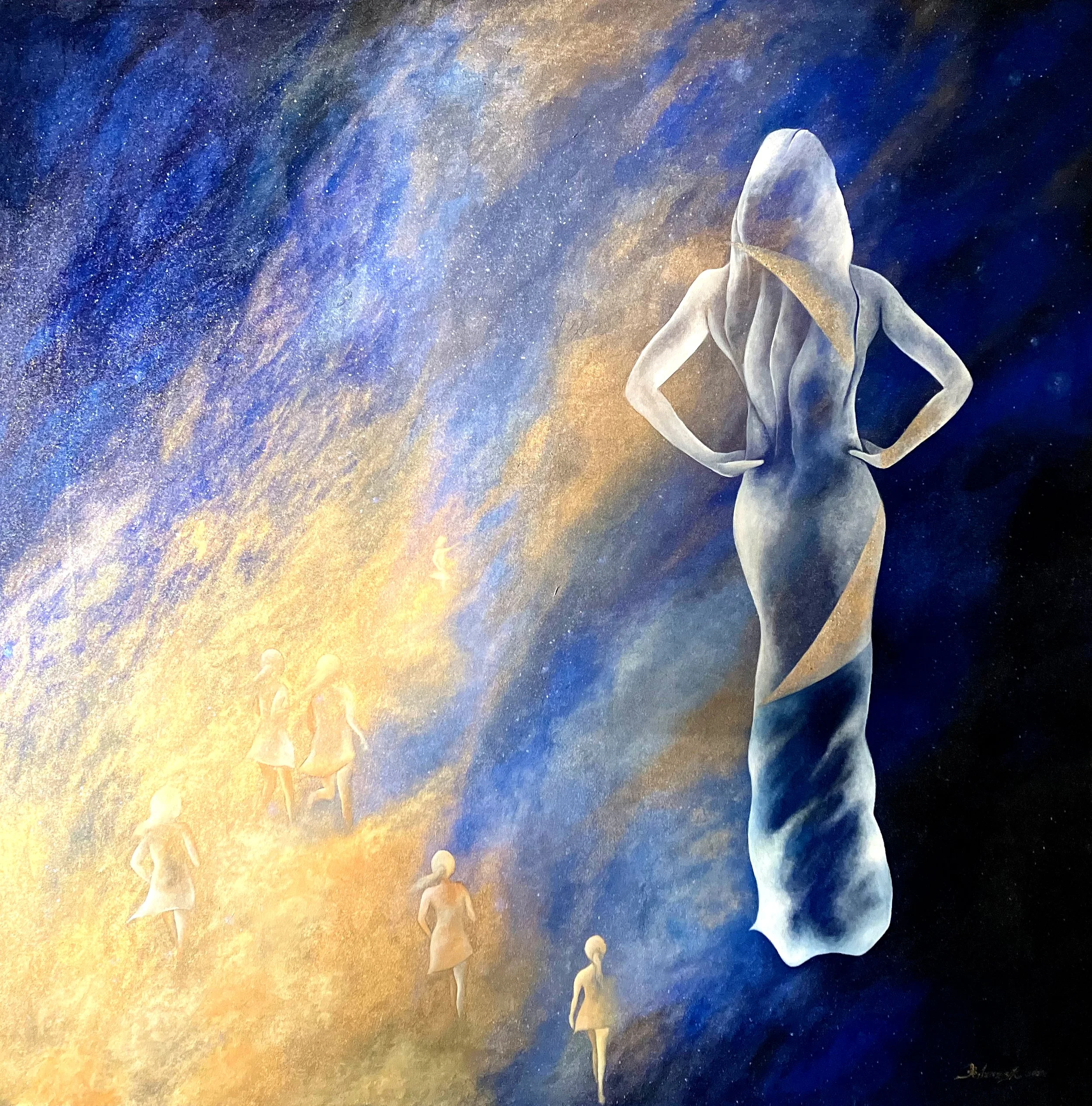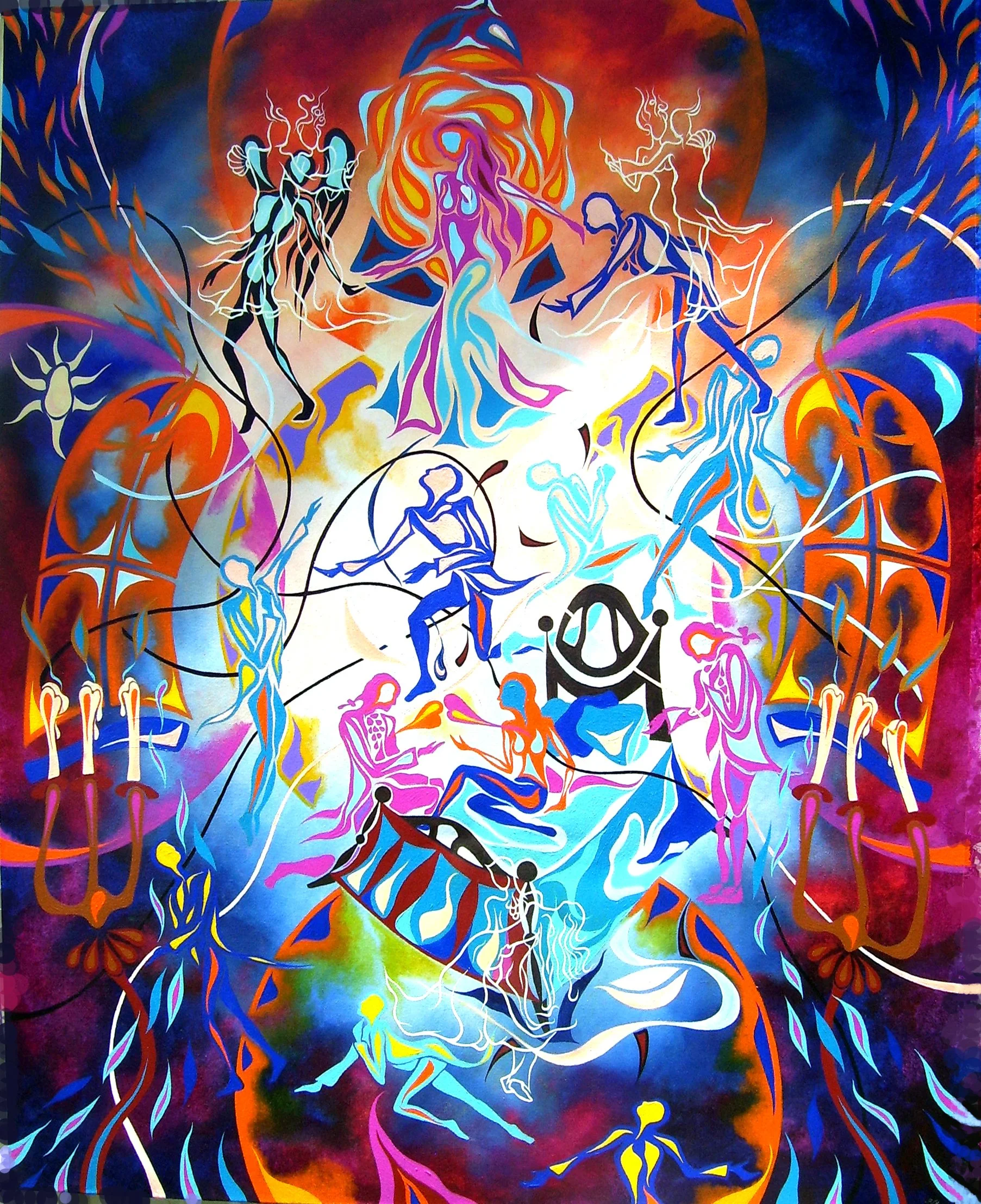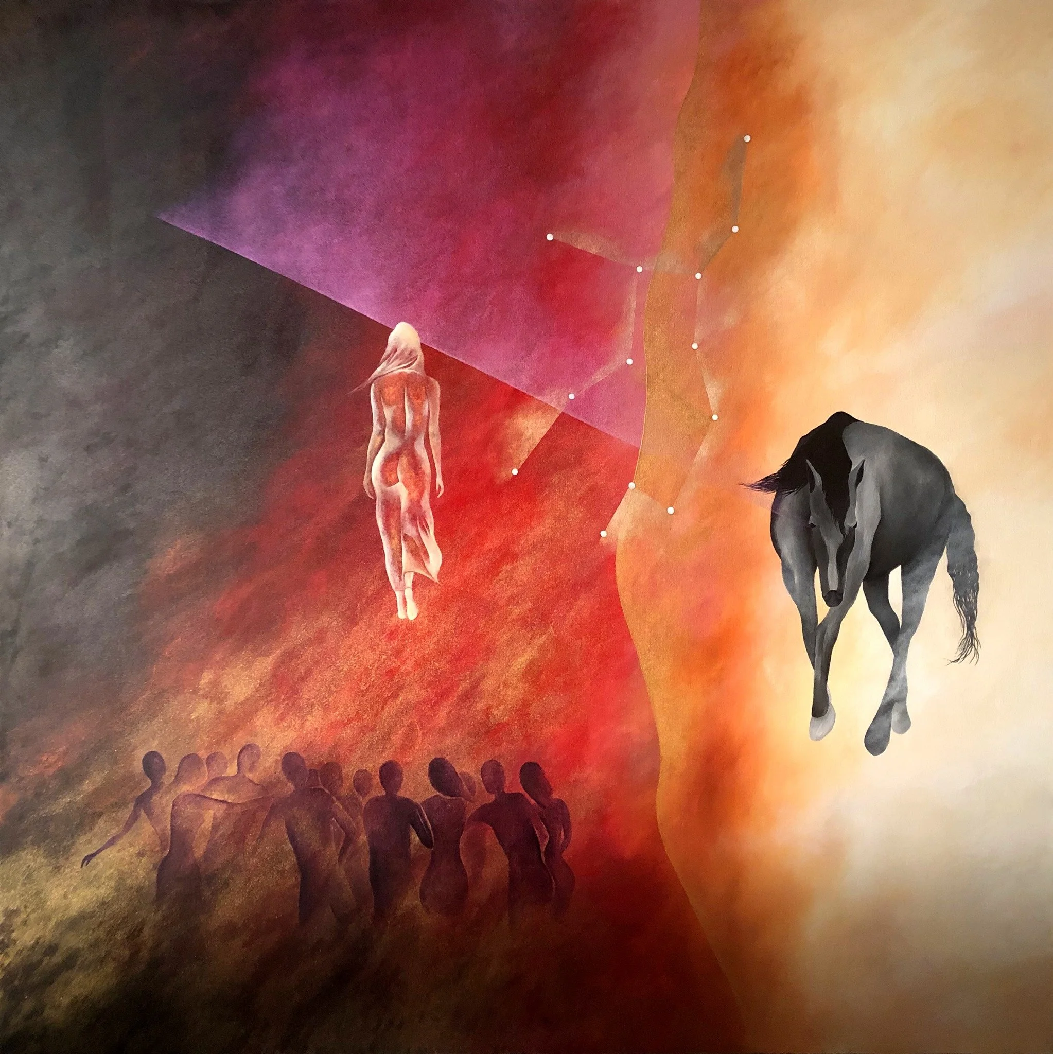 "The Moon Gathers her Children", 6' by 6' ft., acrylic/oil on canvas, R.Pilarczyk