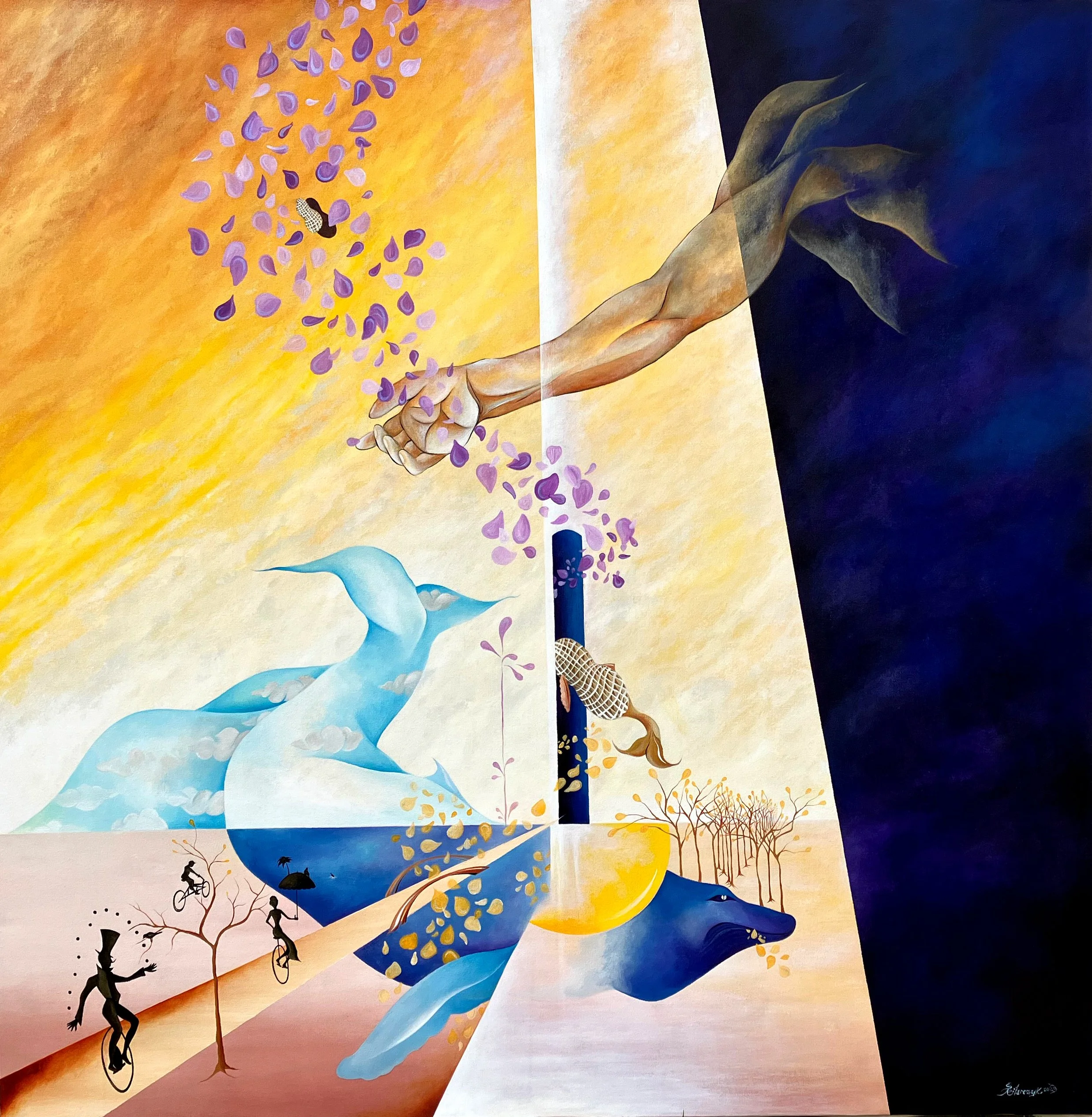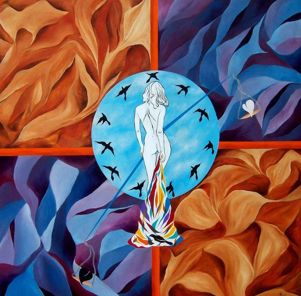 “The Unbearable Lightness of Being; an ode to Kundera”, 6’ by 6’ ft., acrylic/oil on canvas, R.Pilarczyk