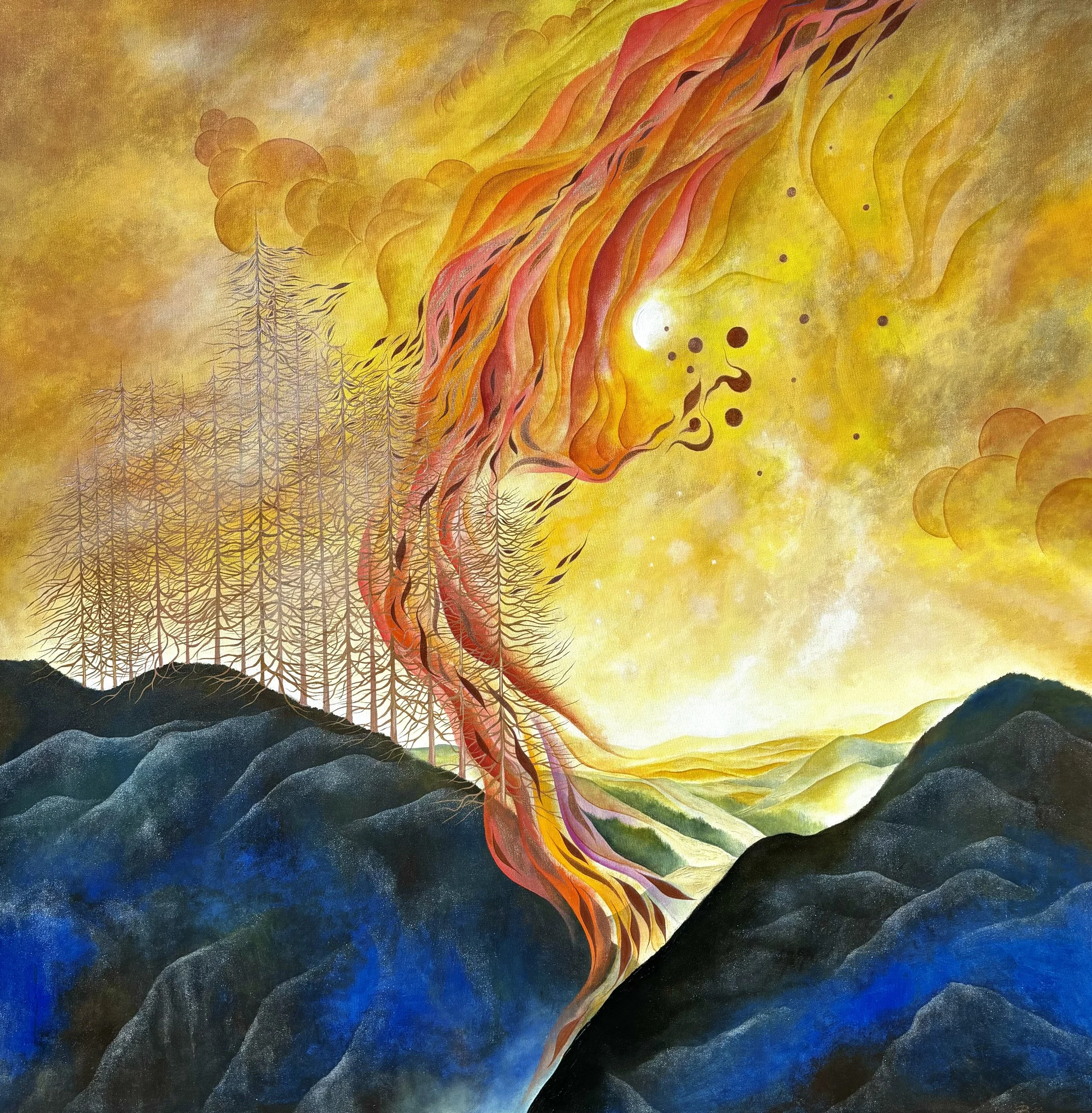 "The Fall Beyond the Forest of Good and Evil" 6' by 6' ft. acrylic/oil on canvas, R.Pilarczyk, Private collection- Poland