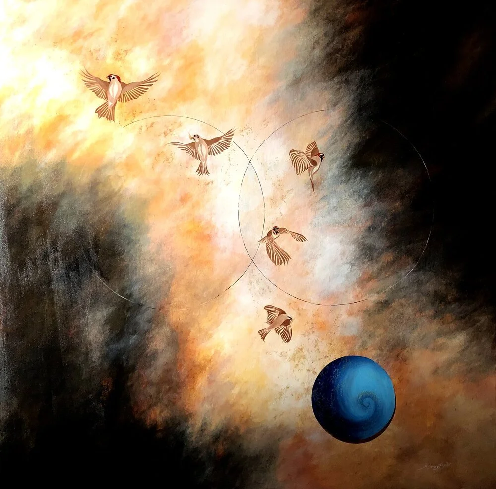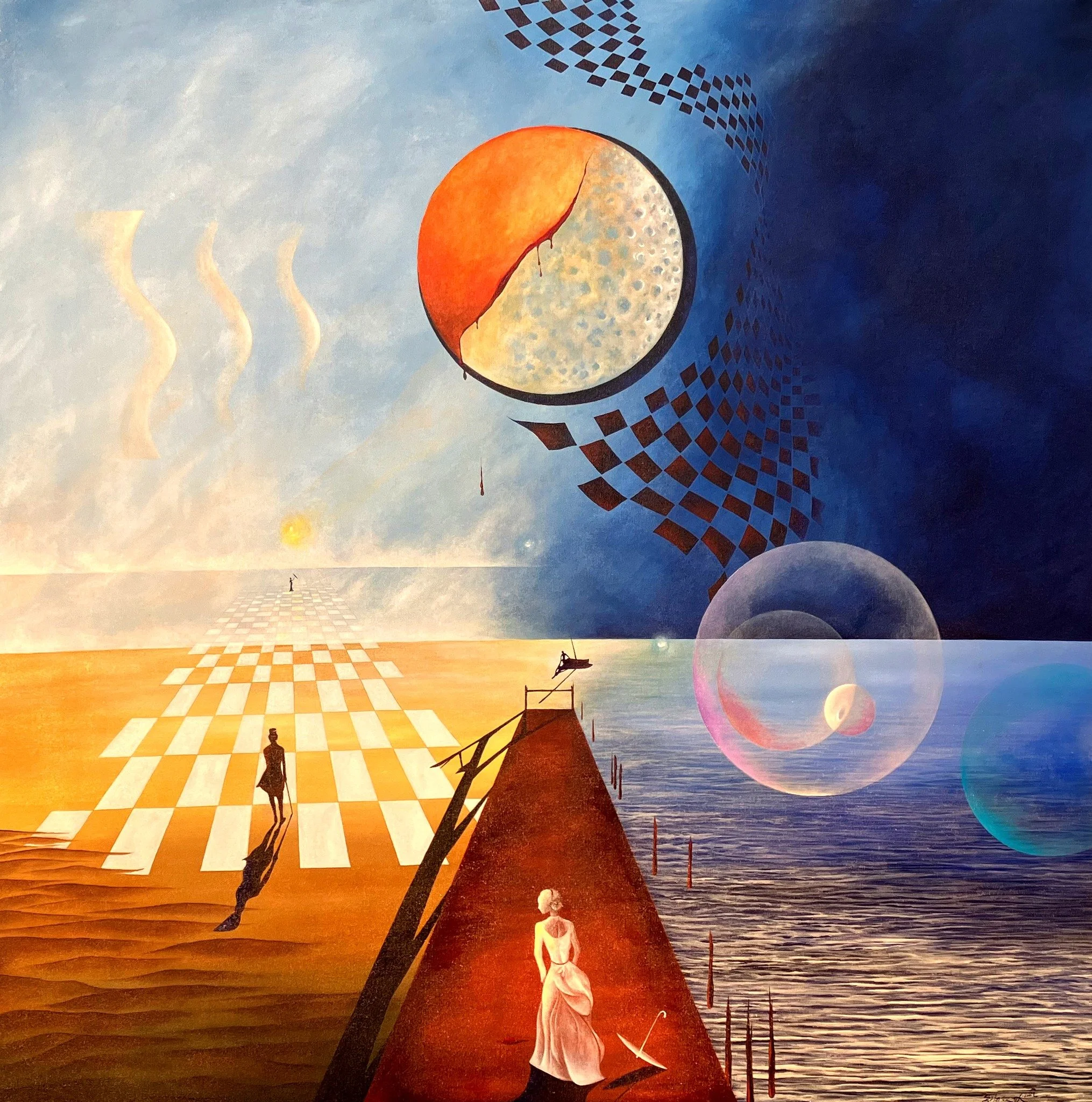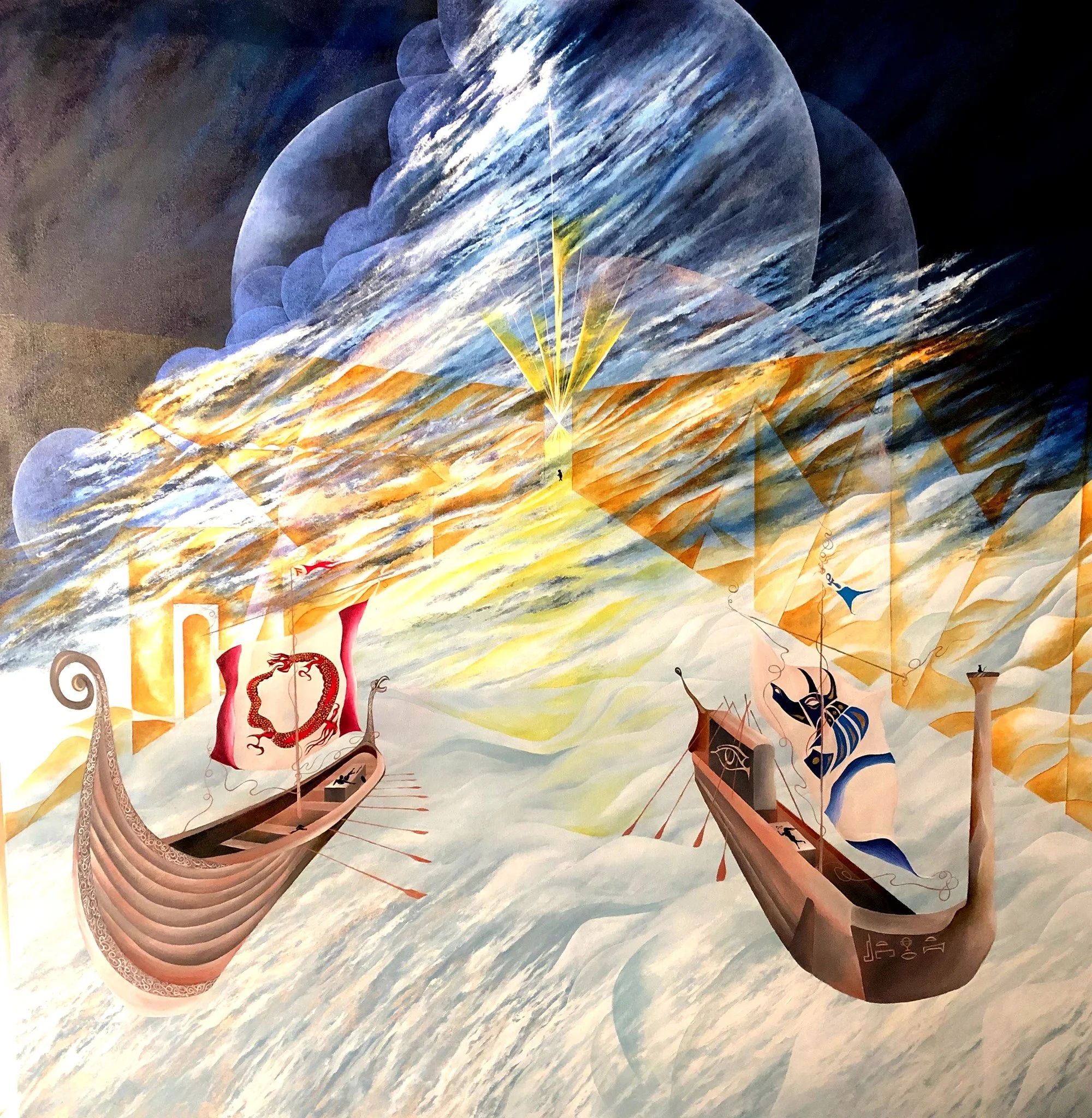 "Like Two Astrals Ships In The Night", 6' by 6' ft., acrylic/oil on canvas, R.Pilarczyk