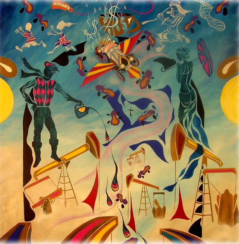 "Chitty Chitty Bang Bang and the Seven Cities of Black Gold", 6' by 6'ft., acrylic/oil on canvas. R. Pilarczyk