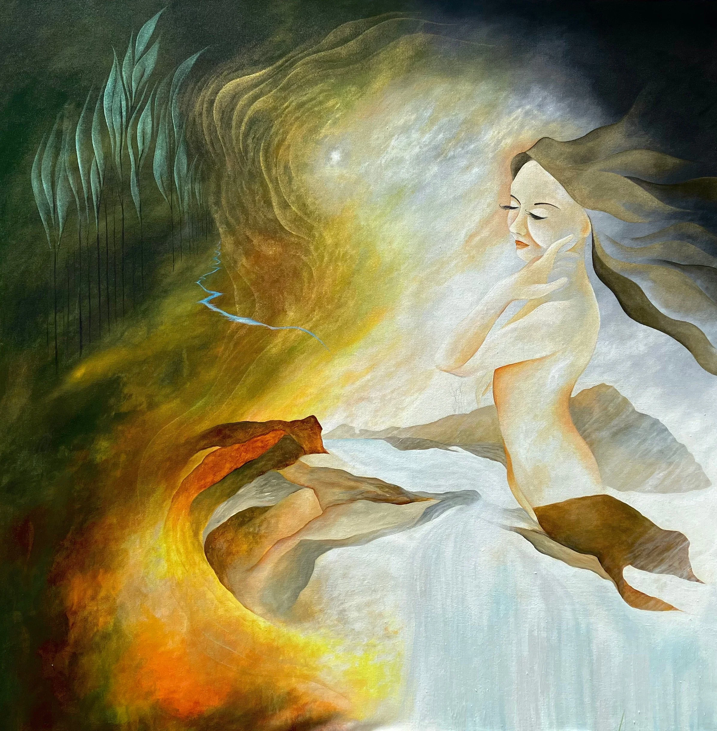 “The Seer; she washed her hair amongst the stones”, 6’ by 8’ ft., acrylic/oil on canvas, R.Pilarczyk