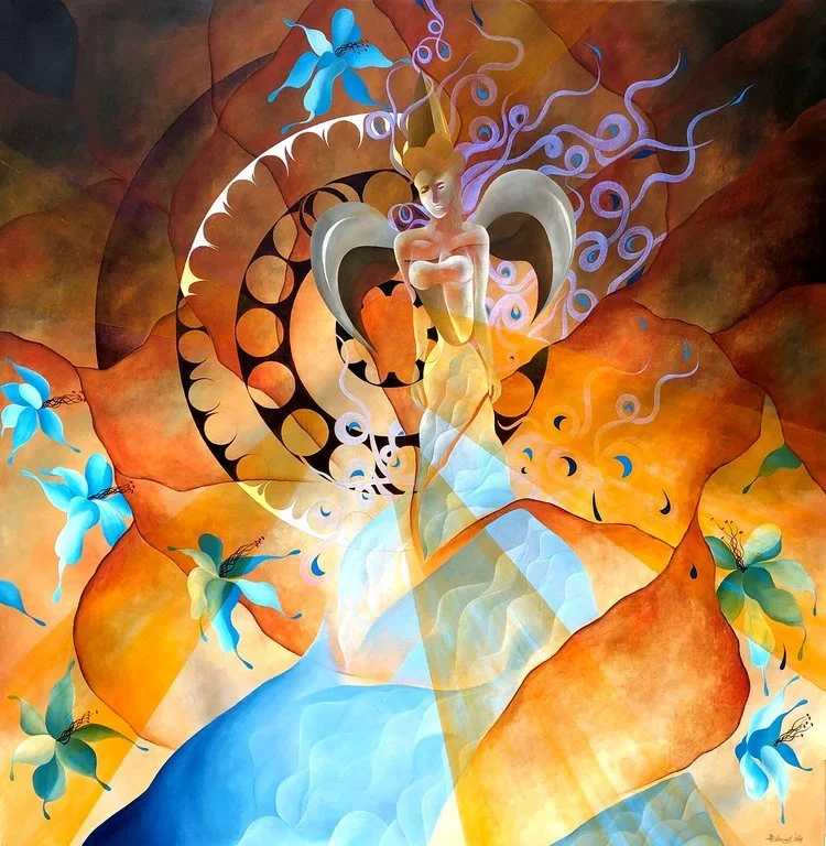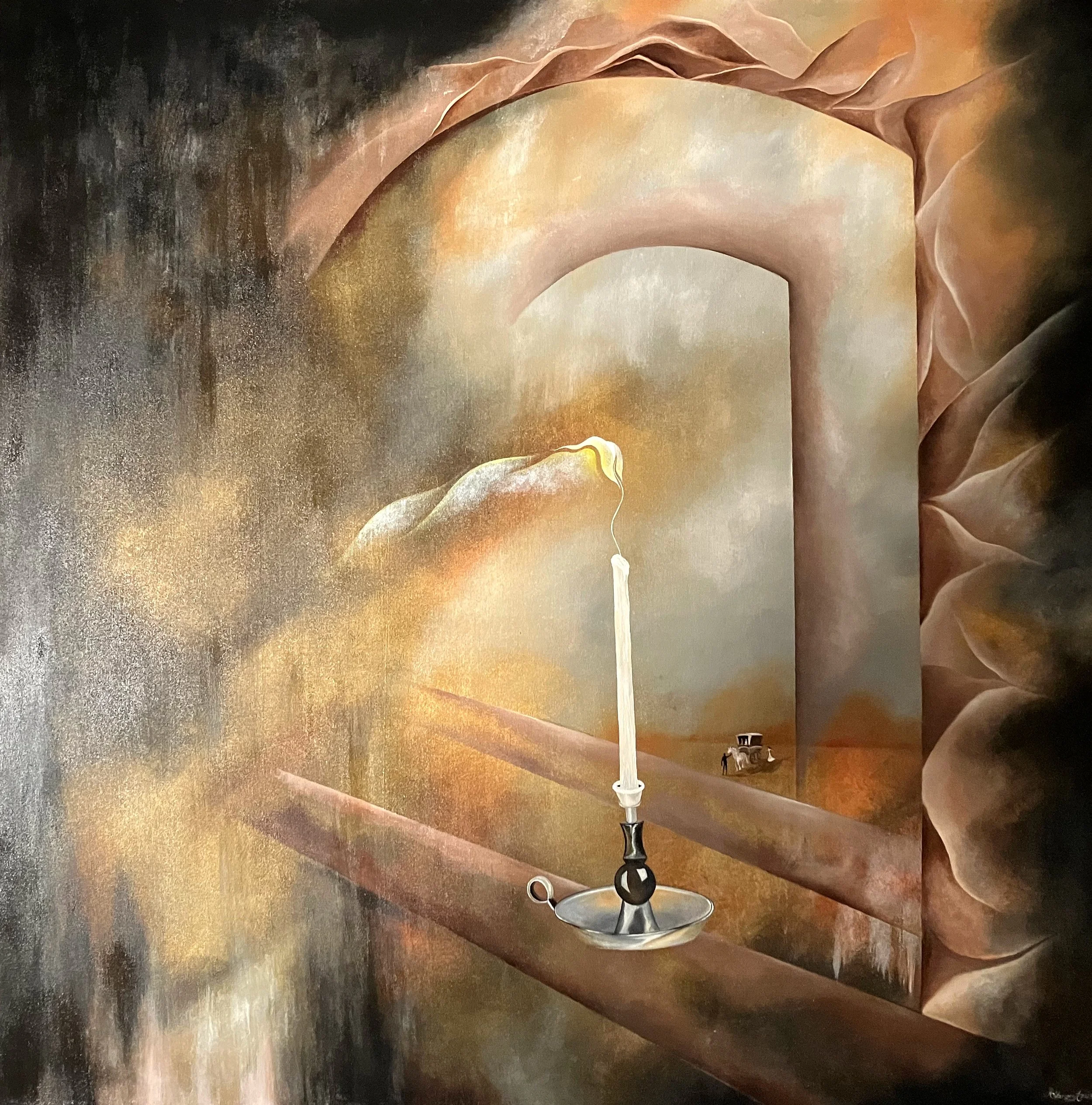 "Vigil on the Enchanted Facade", 6' by 6' ft., acrylic/oil on canvas, R.Pilarczyk, Private collection- Texas, United States of America