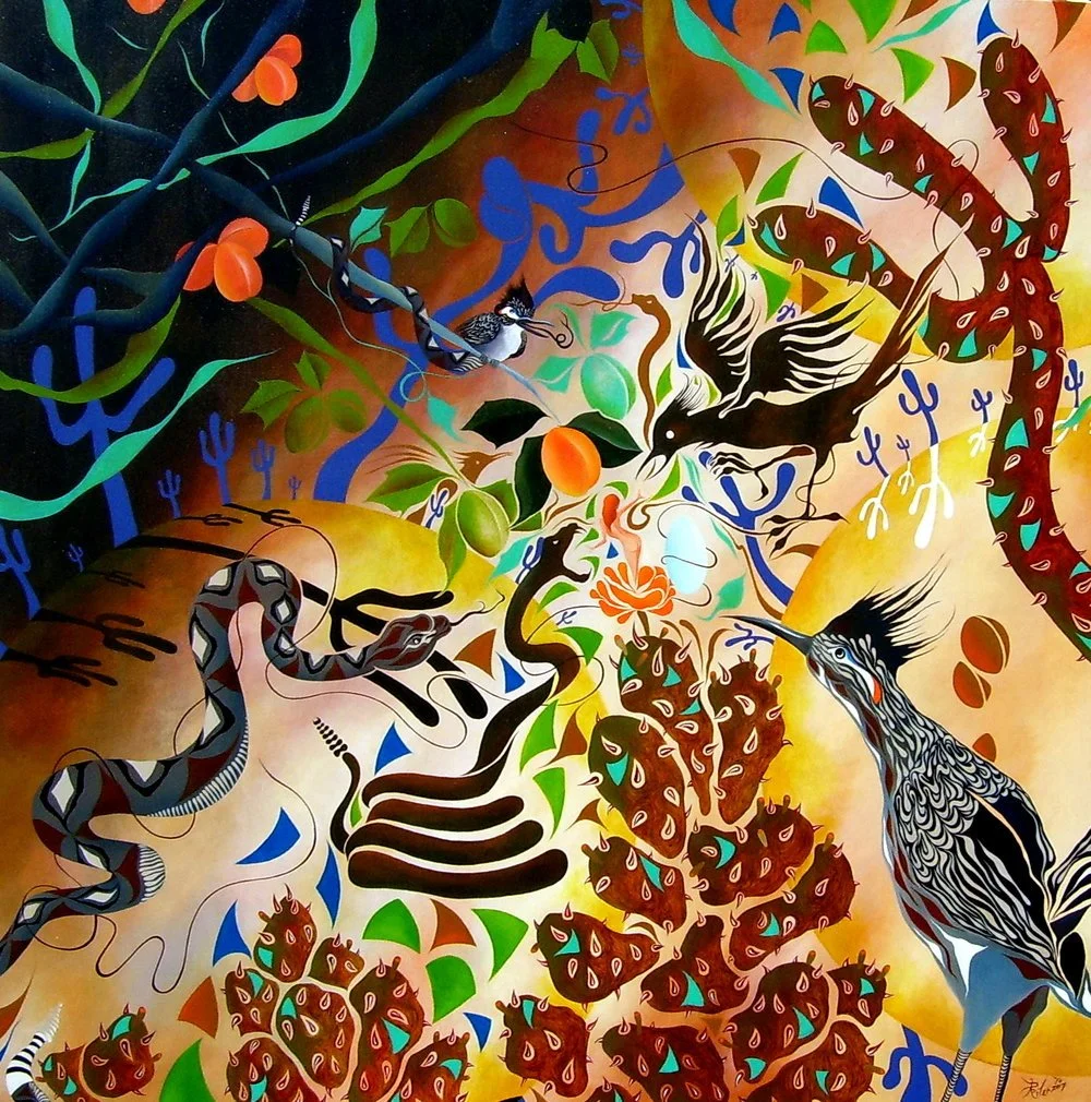"Like a Snake in the Grass", 6' by 6'ft., acrylic/oil on canvas. R. Pilarczyk