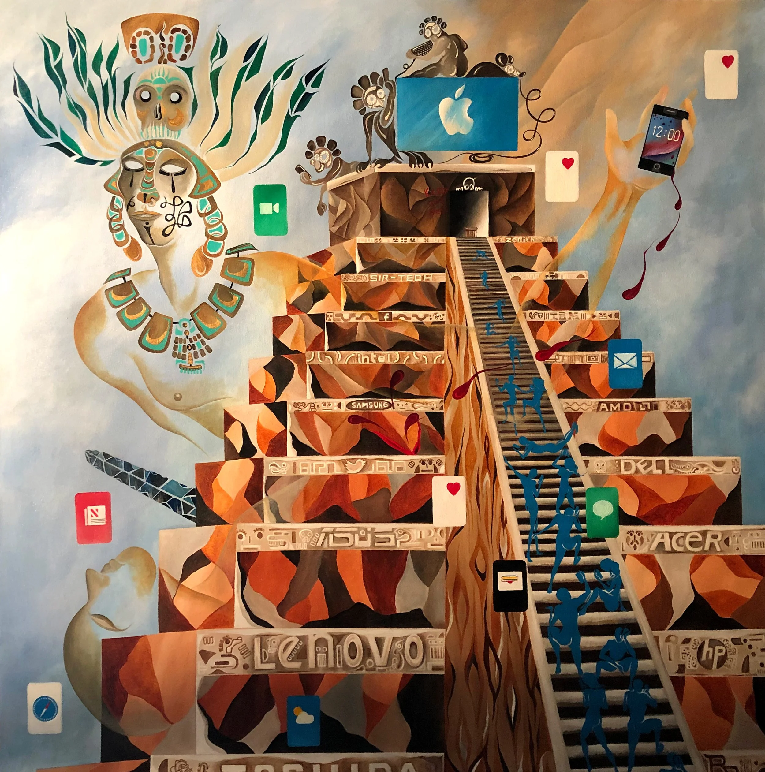 "The Human Sacrifice on the Altar of Technology", 6' by 6' ft., acrylic/oil on canvas, R.Pilarczyk