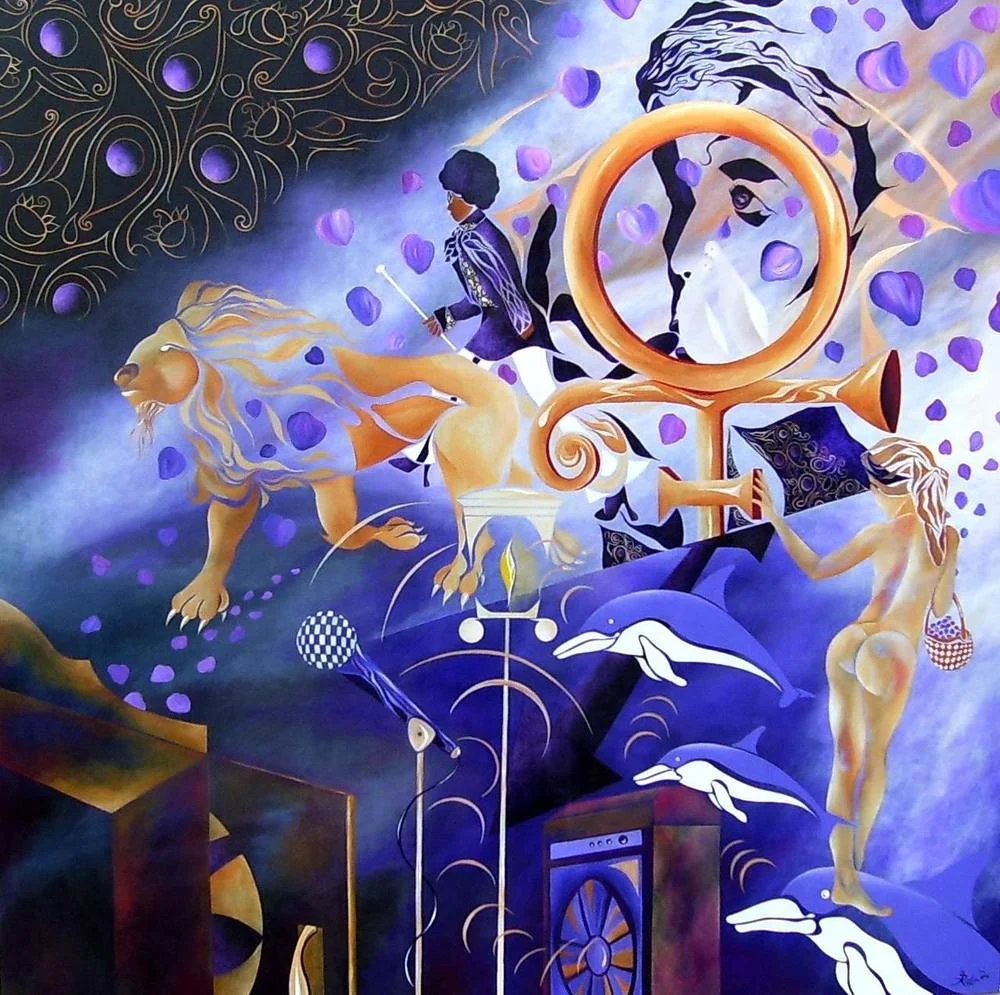 "In Narnia... Sometimes It Snows In April", a tribute to the musician Prince and the author C.S. Lewis, 6' by 6' ft., acrylic/oil on canvas, R.Pilarczyk, Private collection- Arizona, United States of America