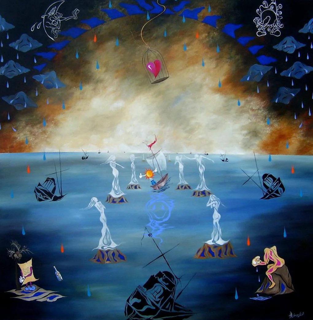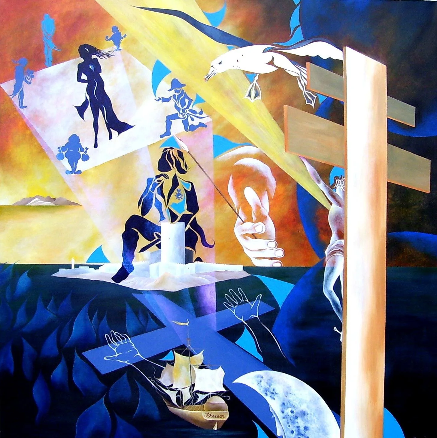 "Captain Sunshine on the Sea of Sorrows", 6' by 6' ft., acrylic/oil on canvas, R.Pilarczyk