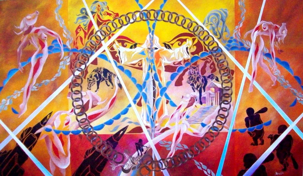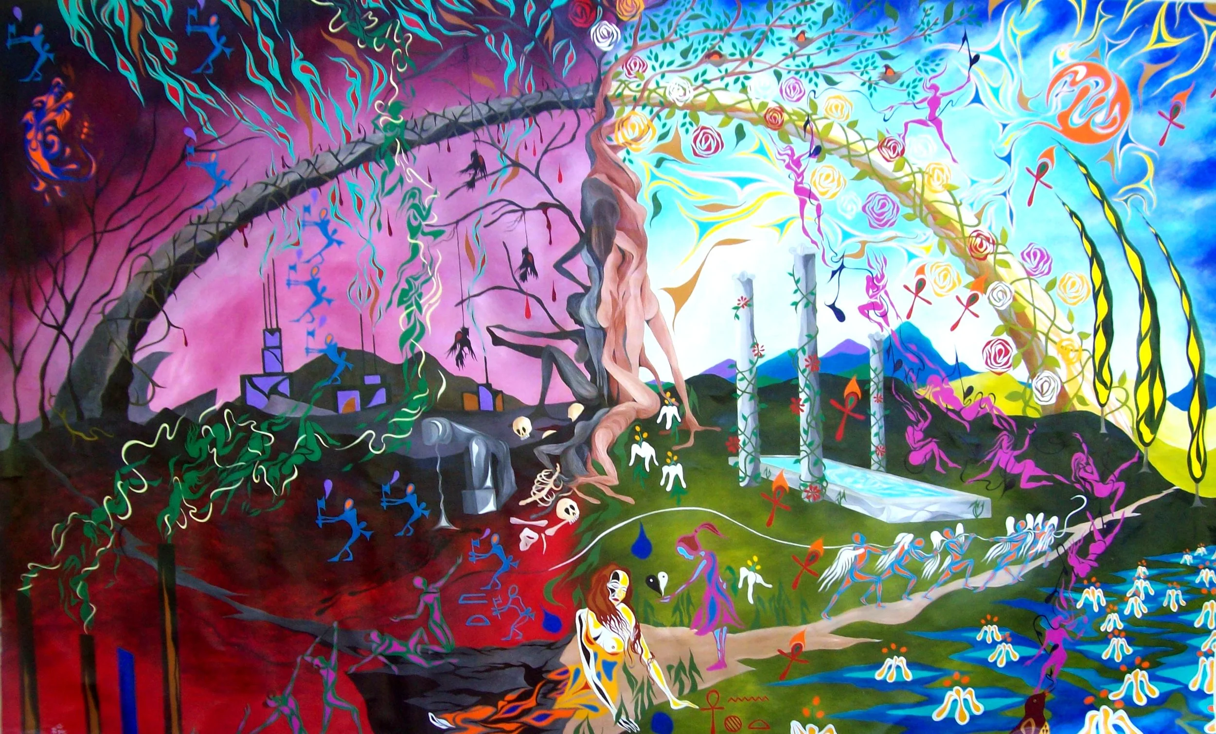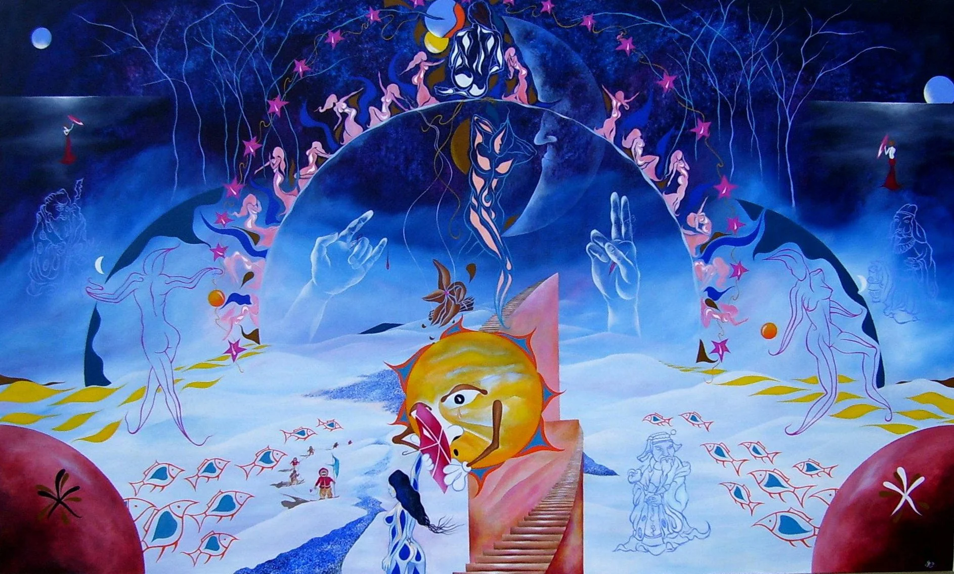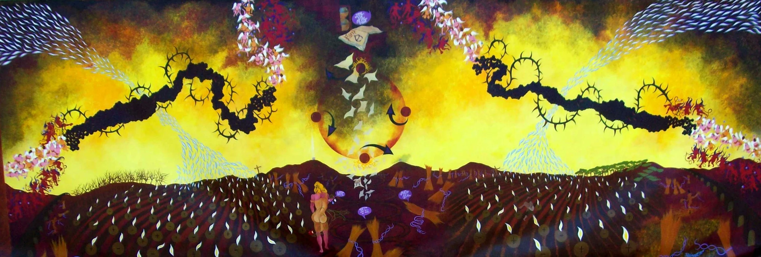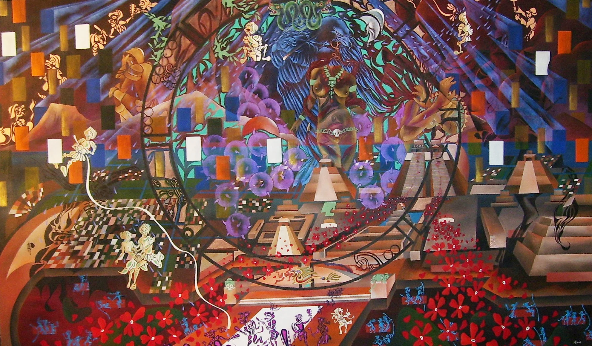 "Tending the Mind Divine", 6' by 9'ft., acrylic/oil on canvas. R. Pilarczyk, Private collection- Poland