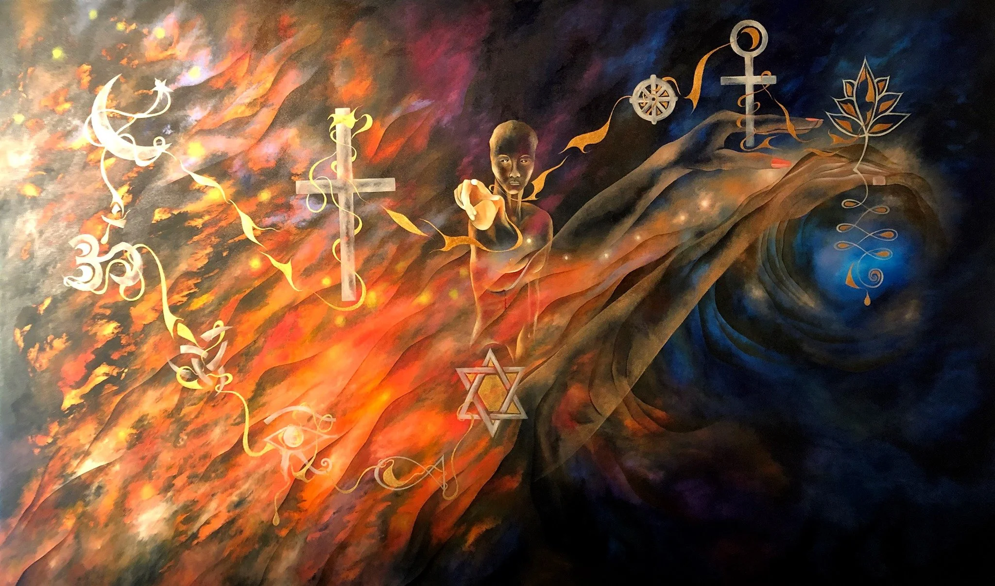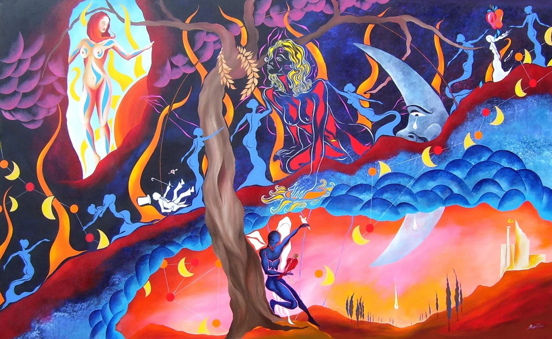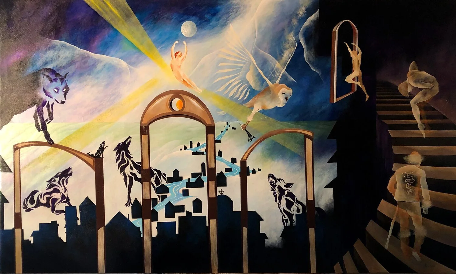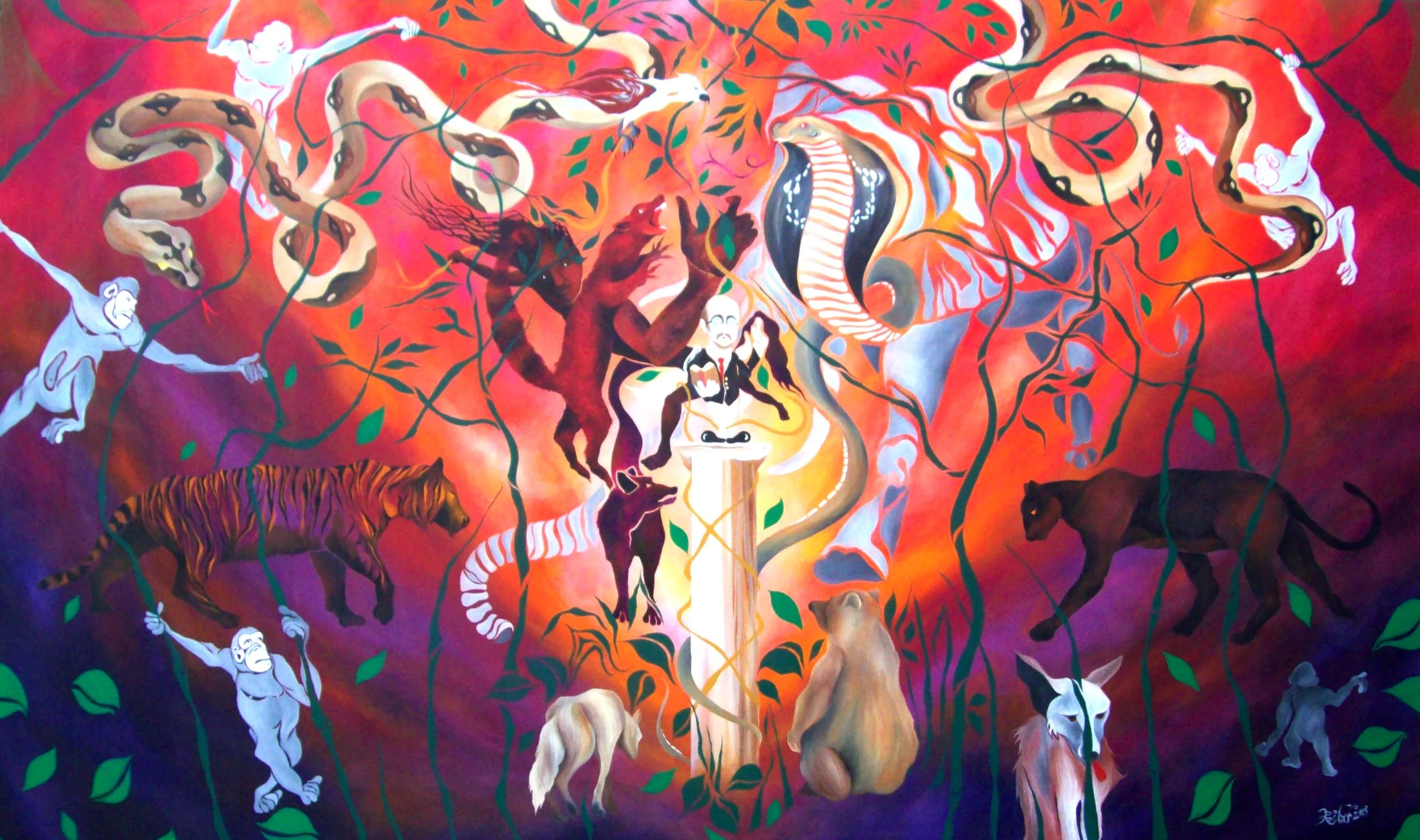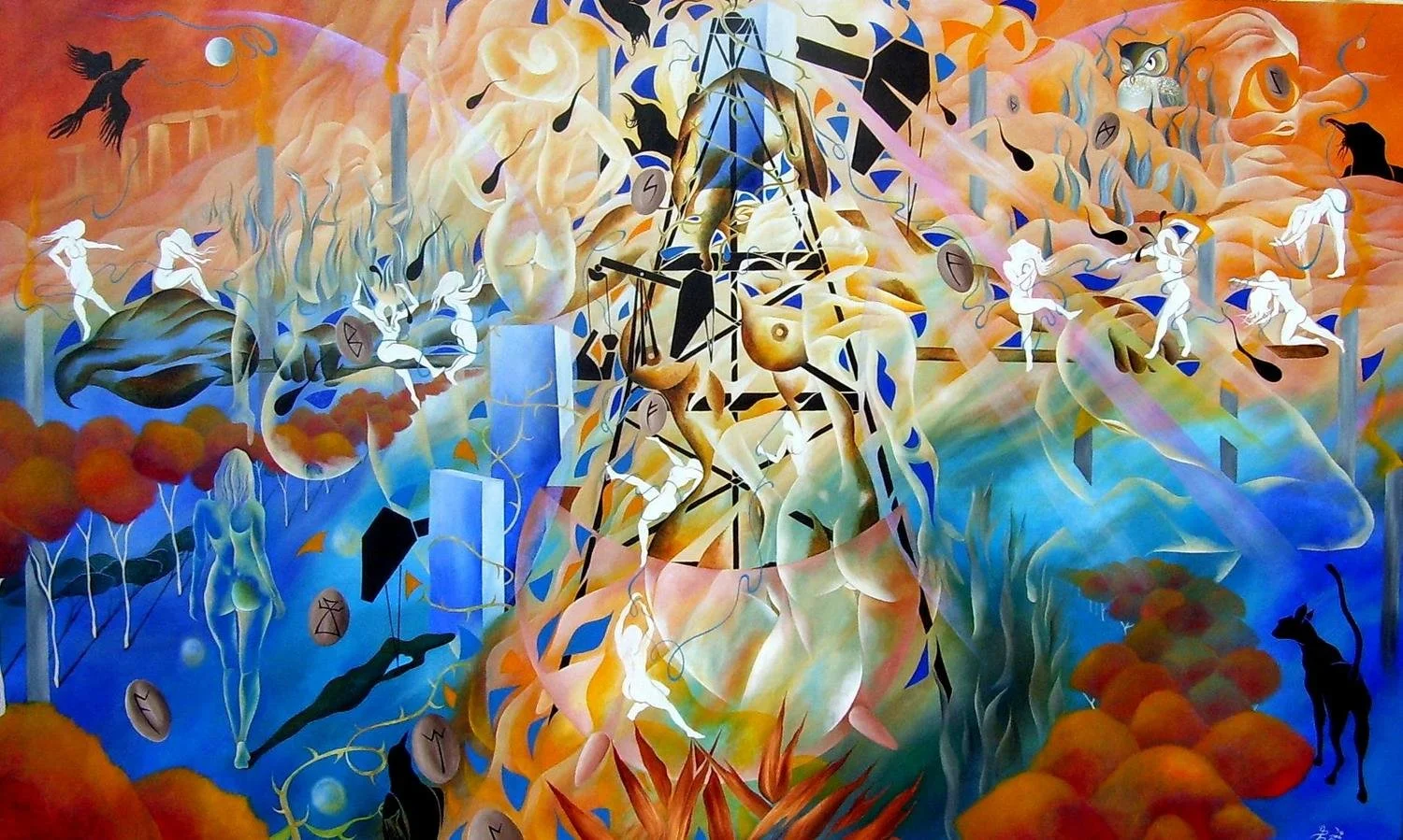 "Tending the Mind Divine", 6' by 9'ft., acrylic/oil on canvas. R. Pilarczyk, Private collection- Poland