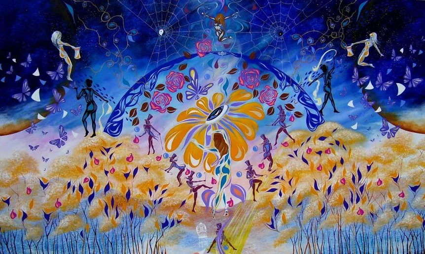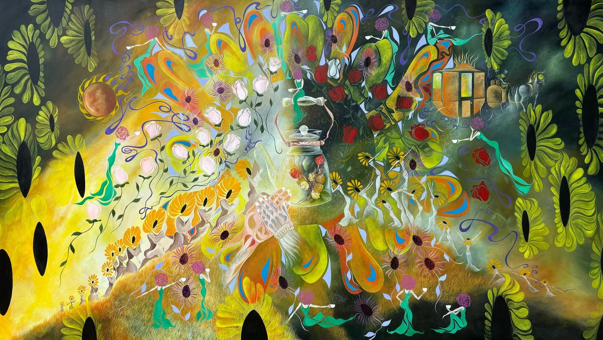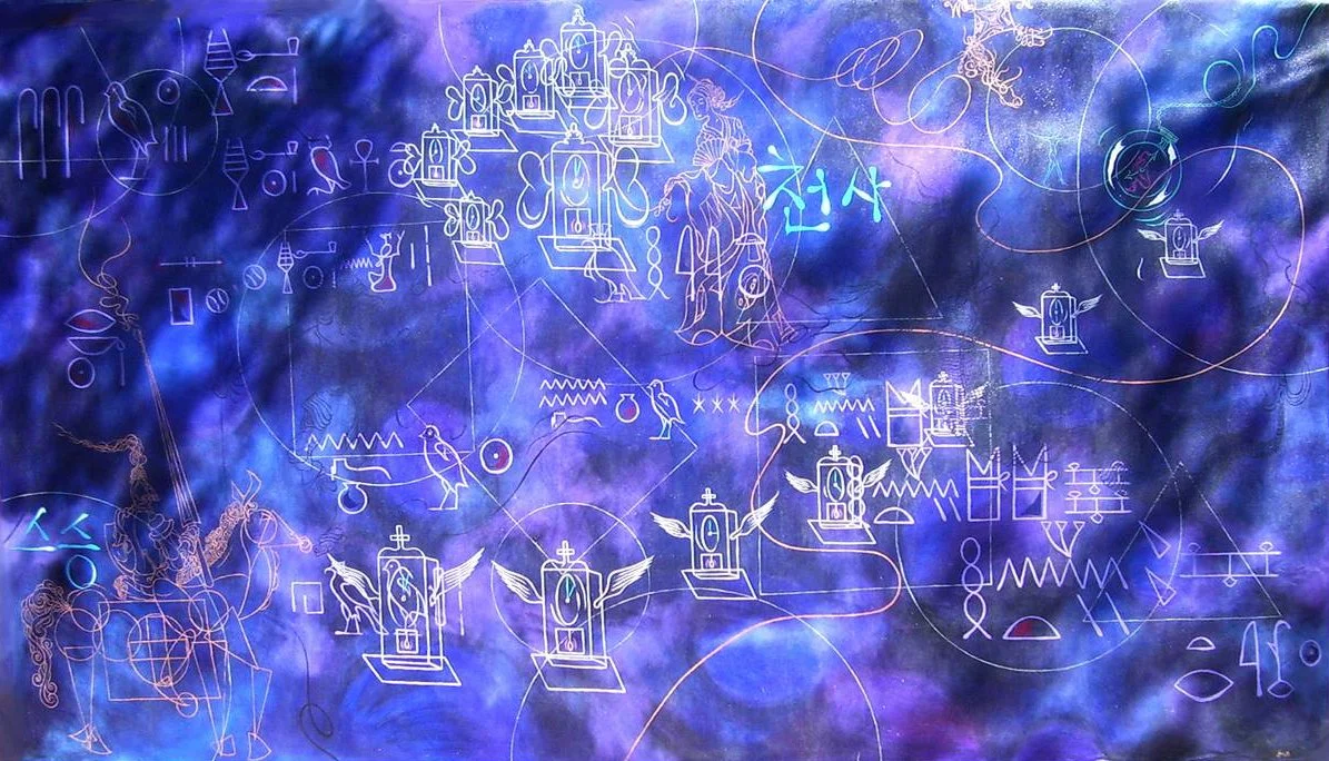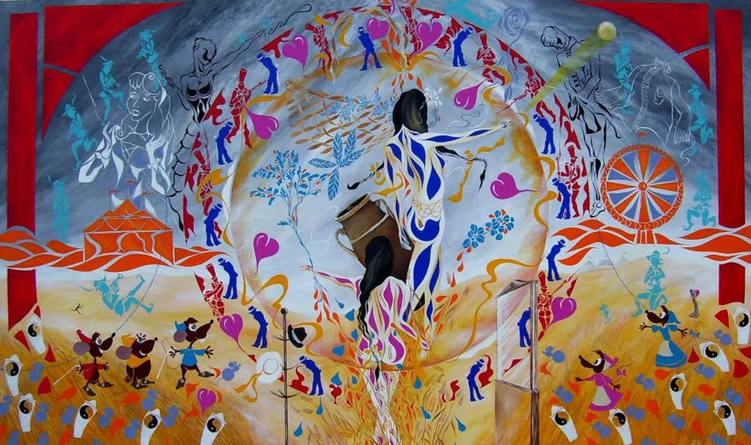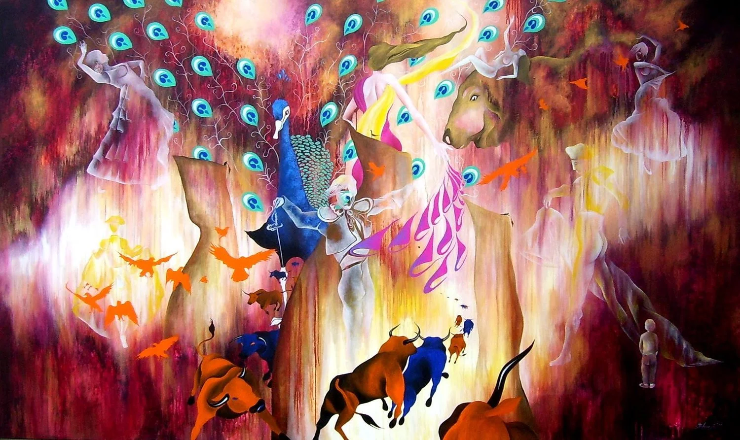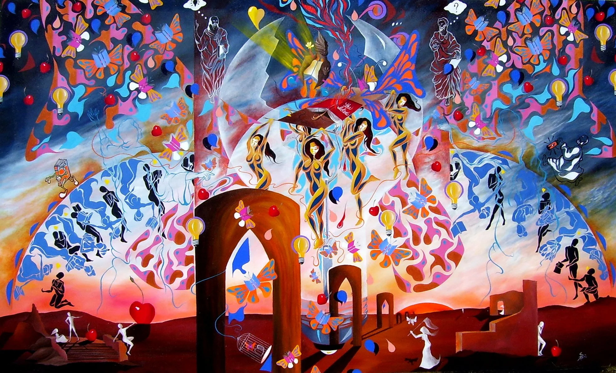 "Tending the Mind Divine", 6' by 9'ft., acrylic/oil on canvas. R. Pilarczyk, Private collection- Poland