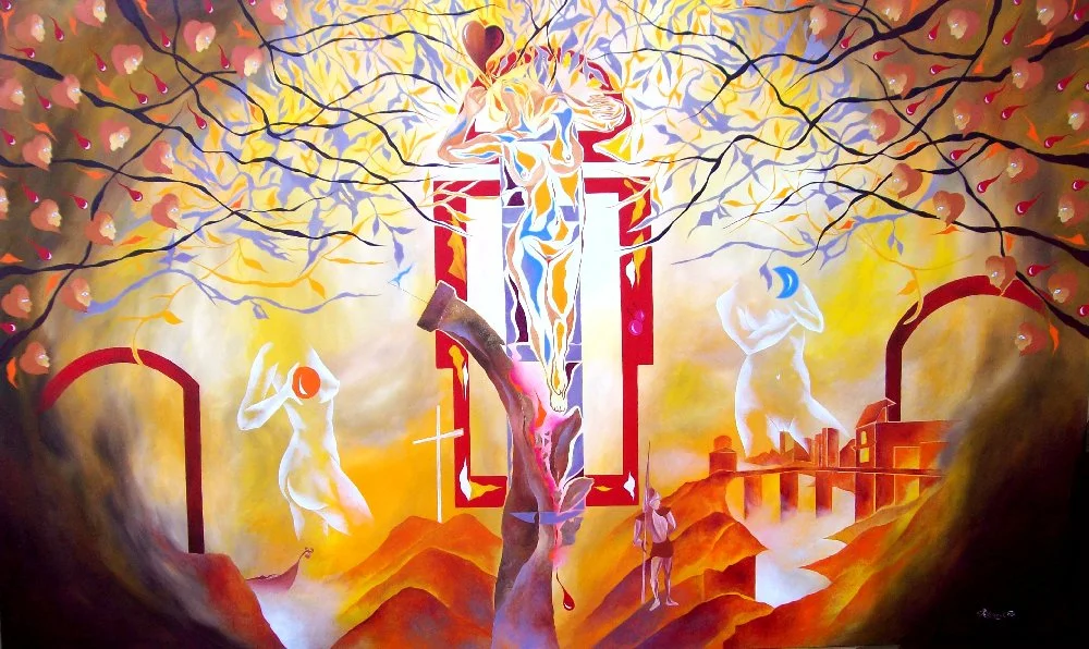 "The Isolation within the Crucifixion", 6' by 10ft., acrylic/oil on canvas. R. Pilarczyk
