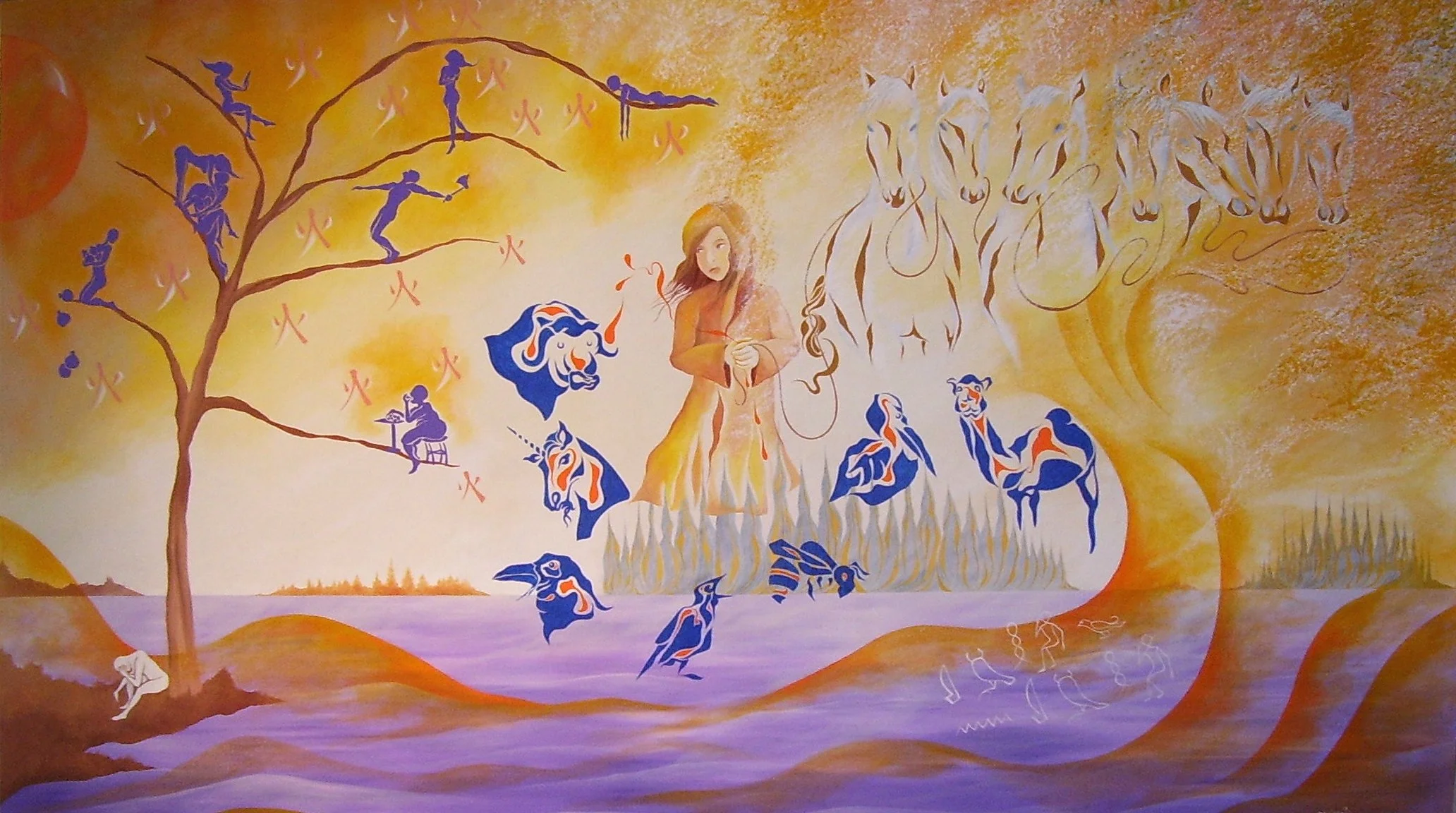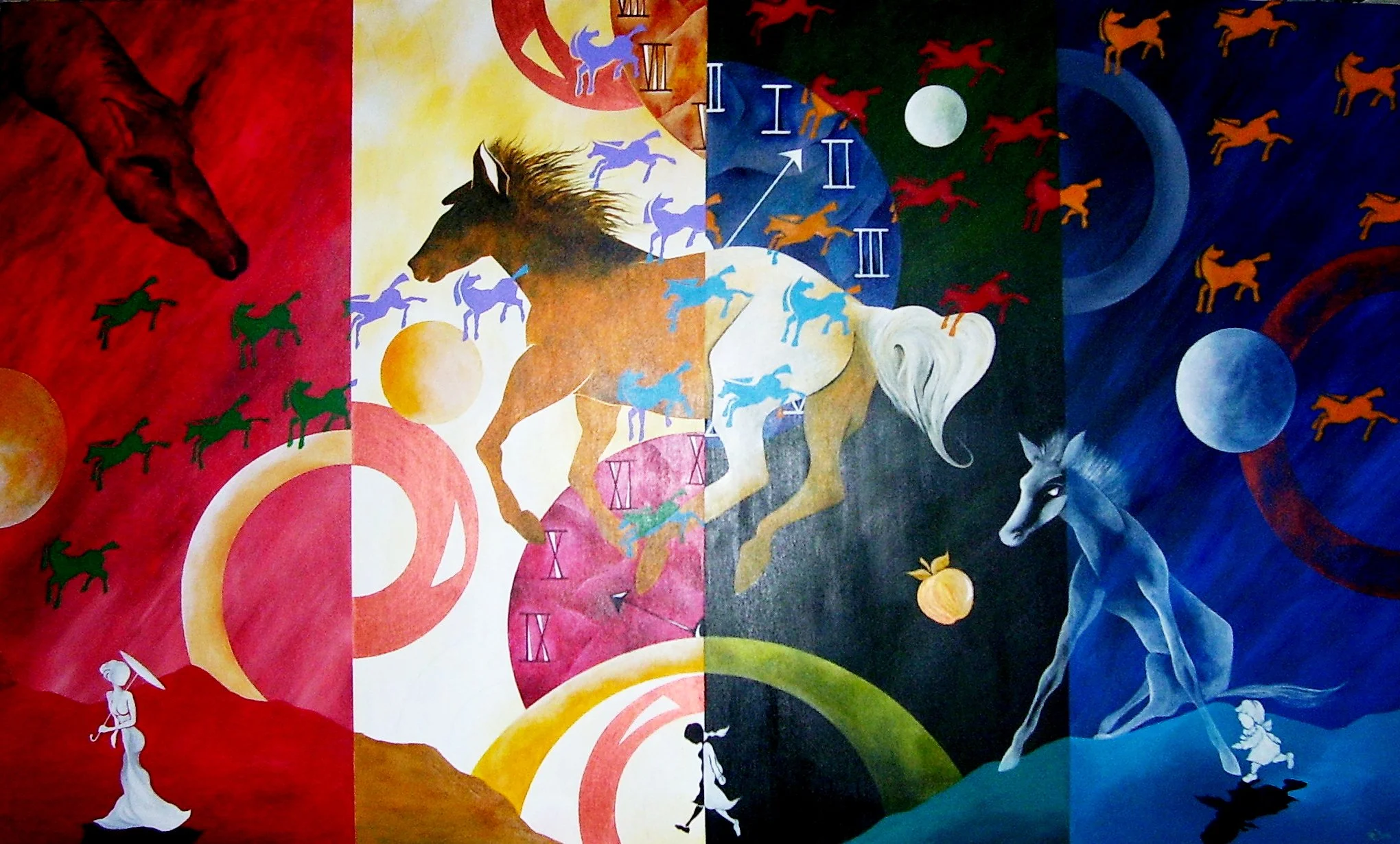 "Birth of the Horse Nations", 6' by 9' ft., acrylic/oil on canvas, R.Pilarczyk