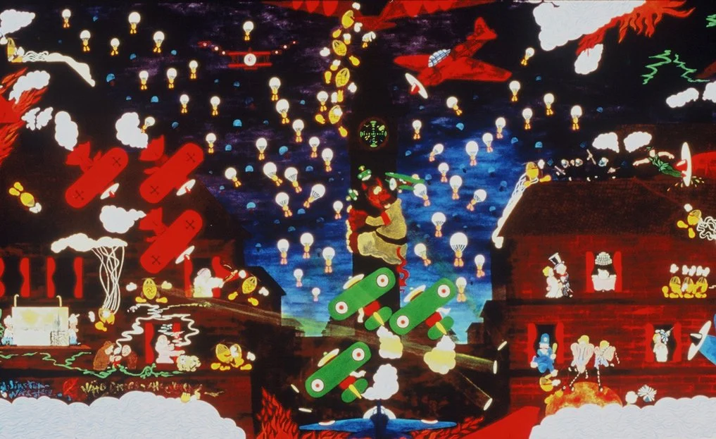"Angels Above Midway", 6' by 15'ft., acrylic/oil on canvas. R. Pilarczyk, VFW collection- Texas, United States of America
