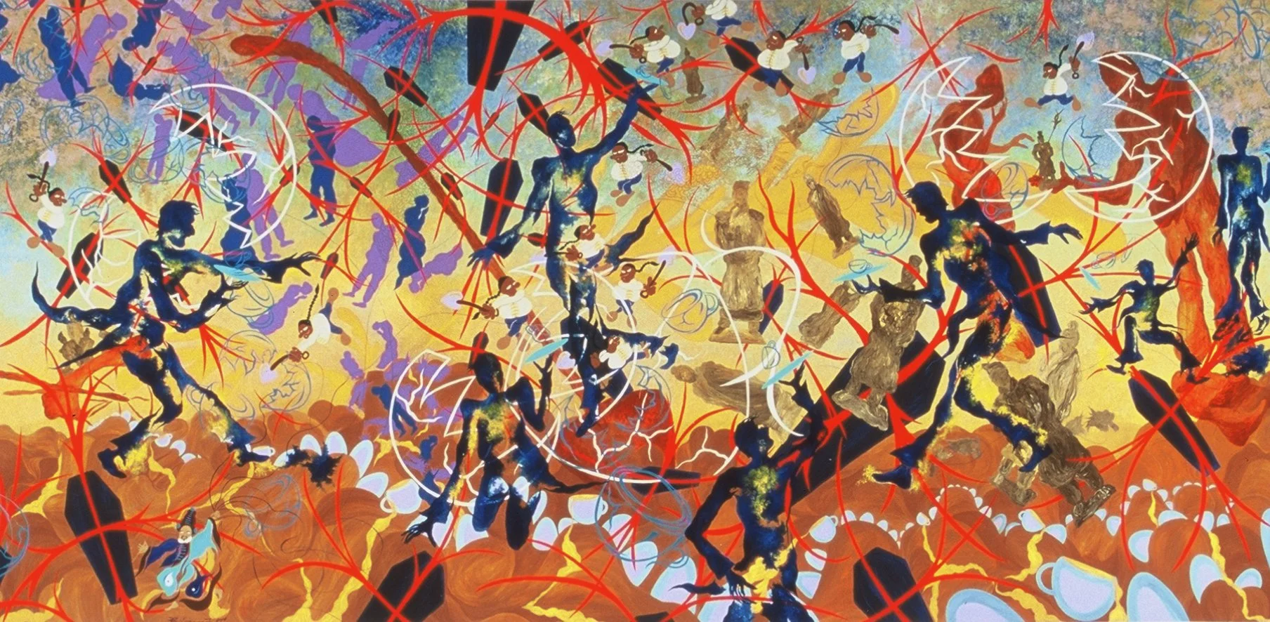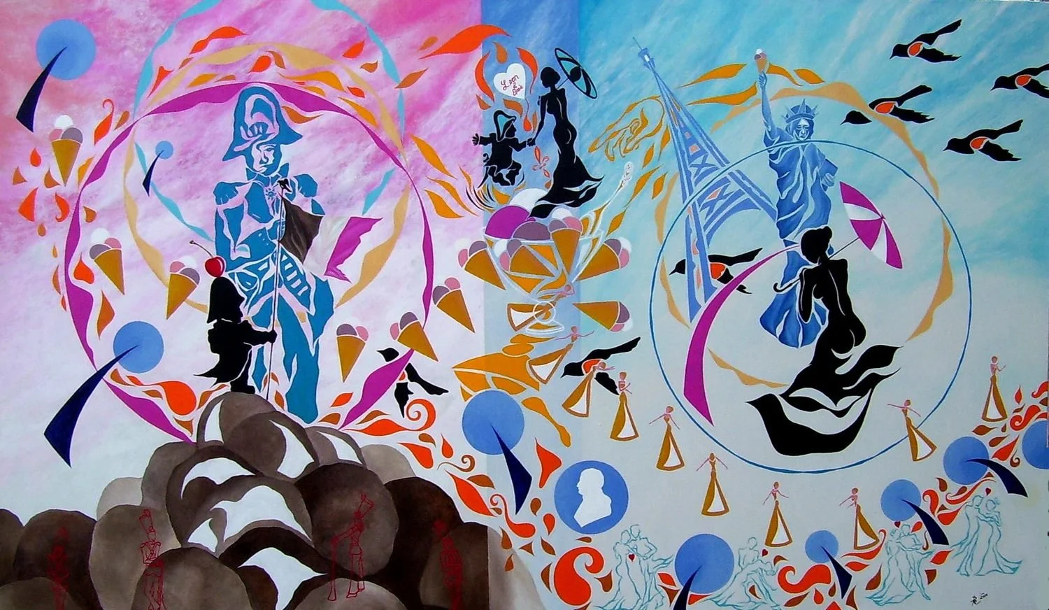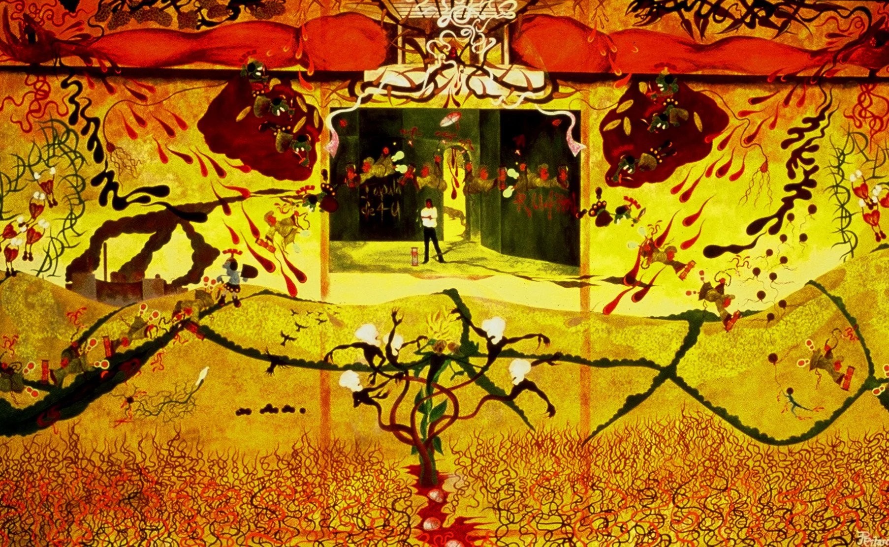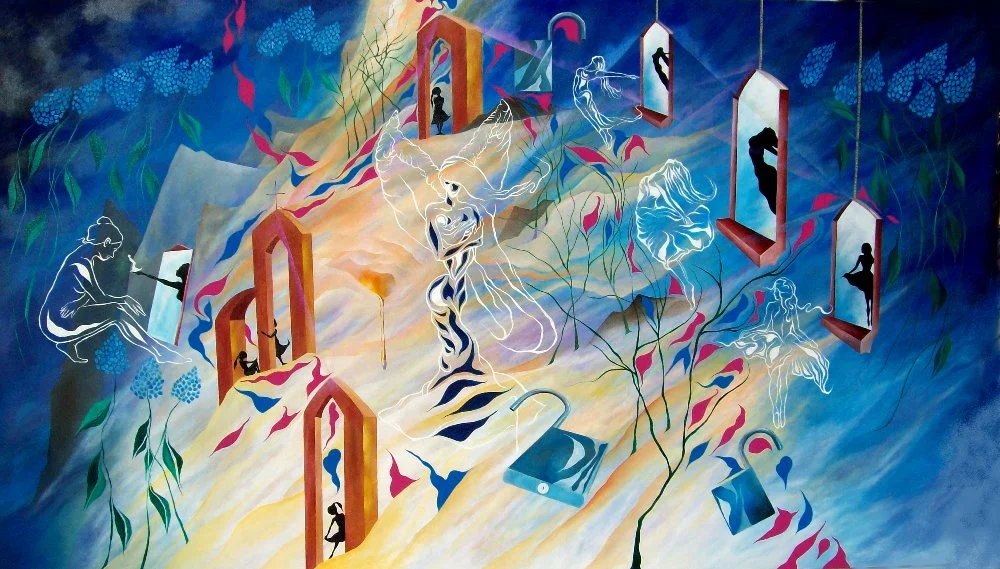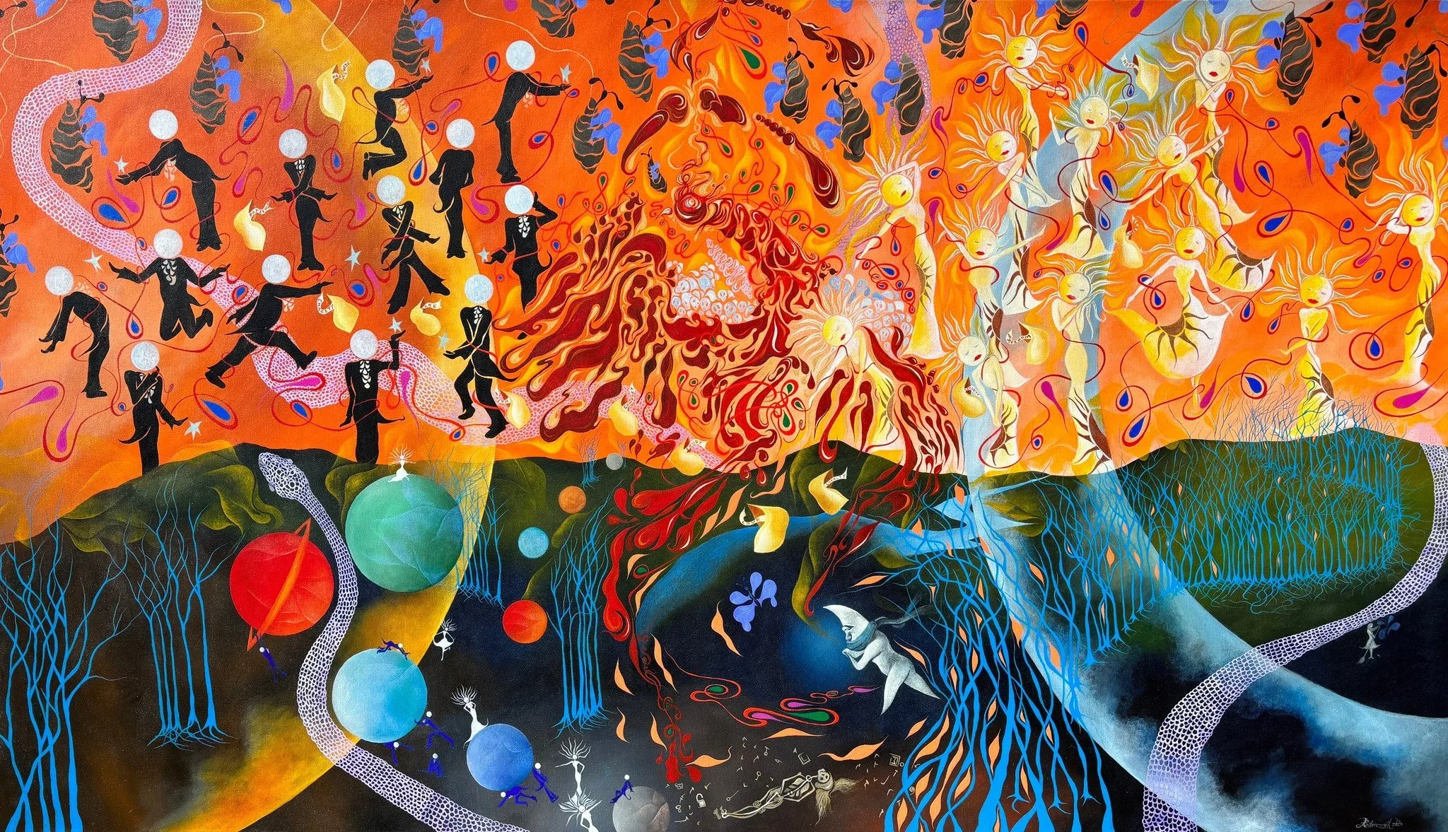"Beethoven’s Migrating Senses", (upper right region) 6' by 11'ft., acrylic/oil on canvas. R. Pilarczyk, Private collection- Tennessee, United States of America