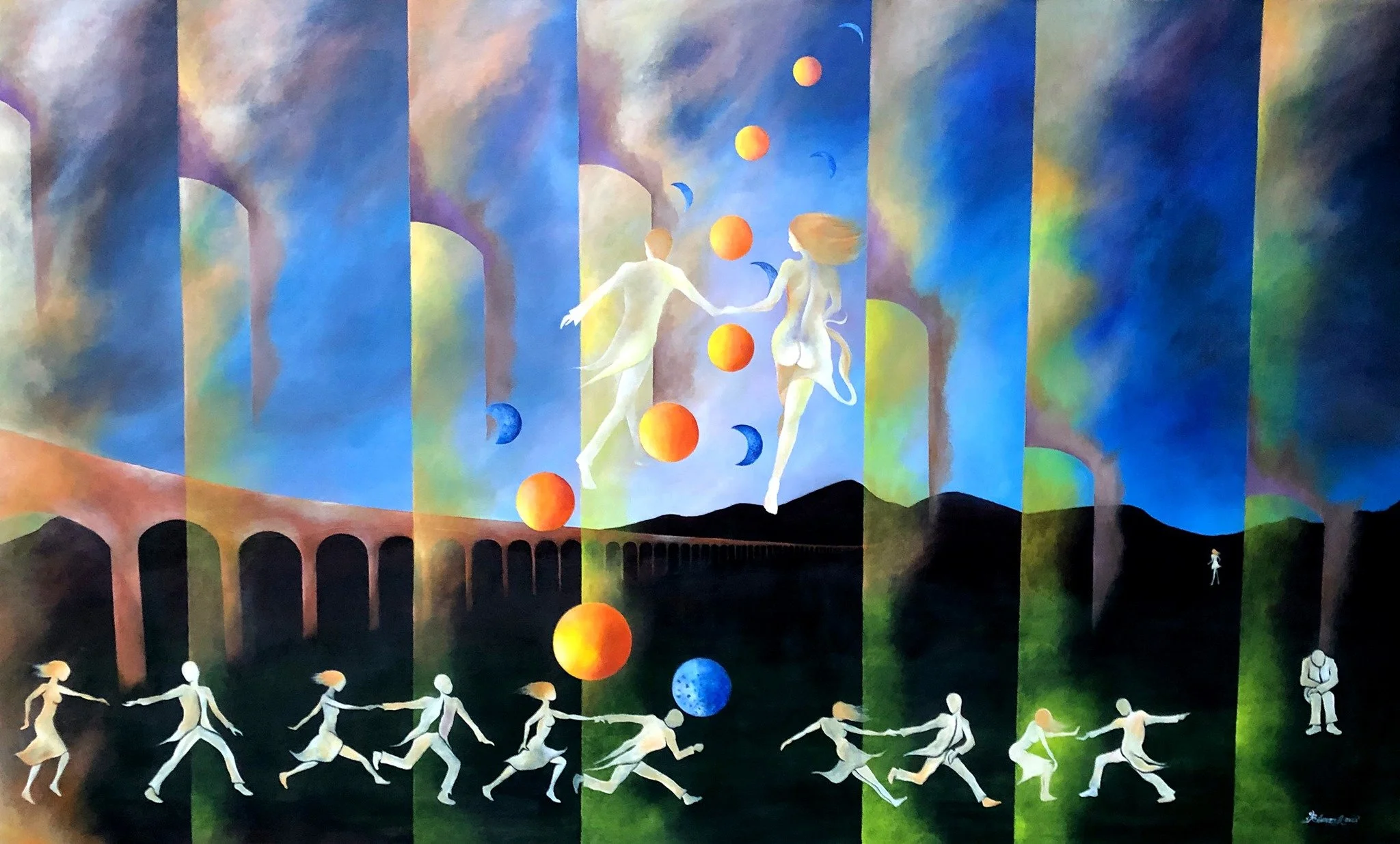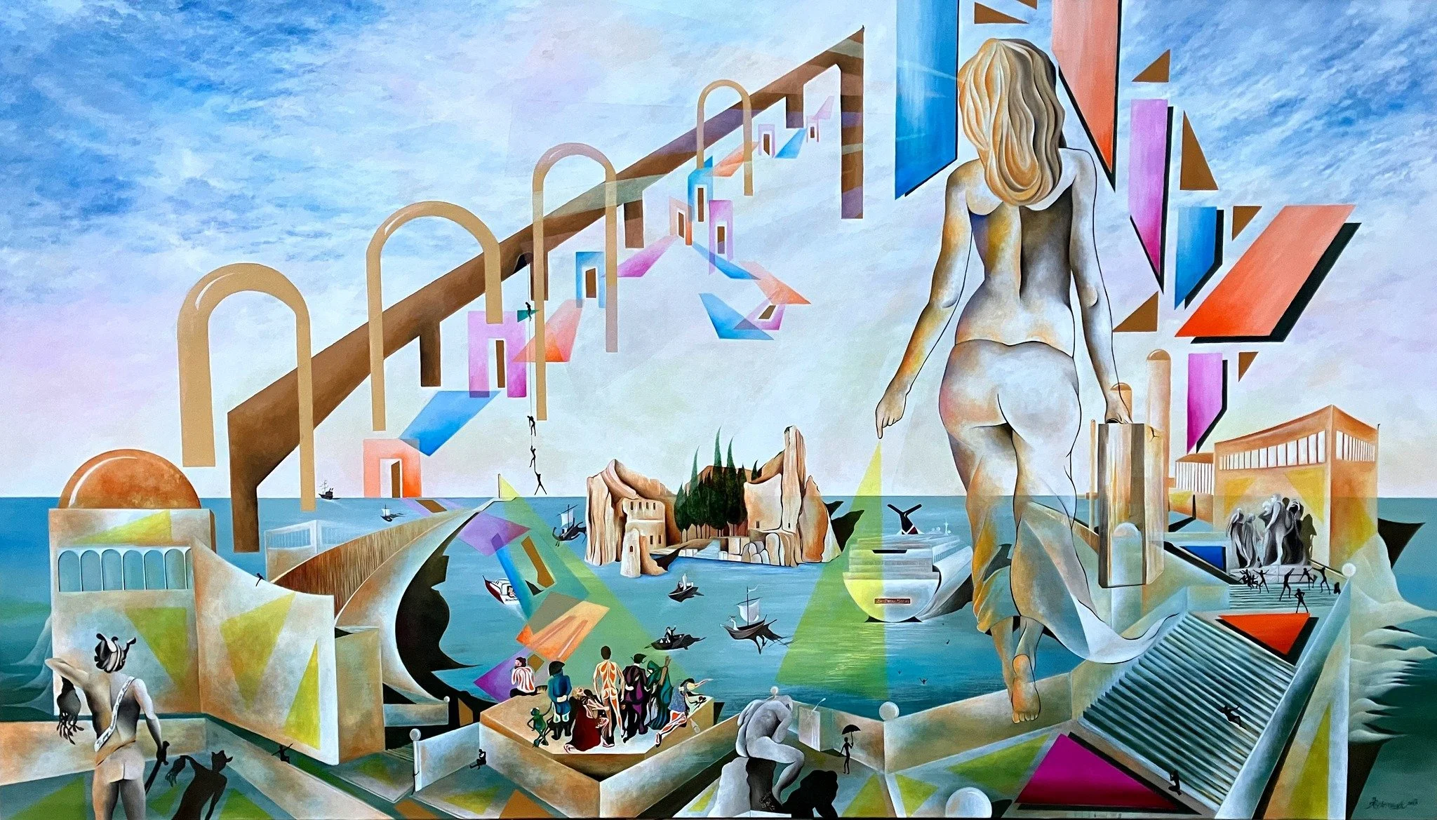 "Bridges Across Sonorous Travels", 6' by 9' ft., acrylic/oil on canvas, R.Pilarczyk