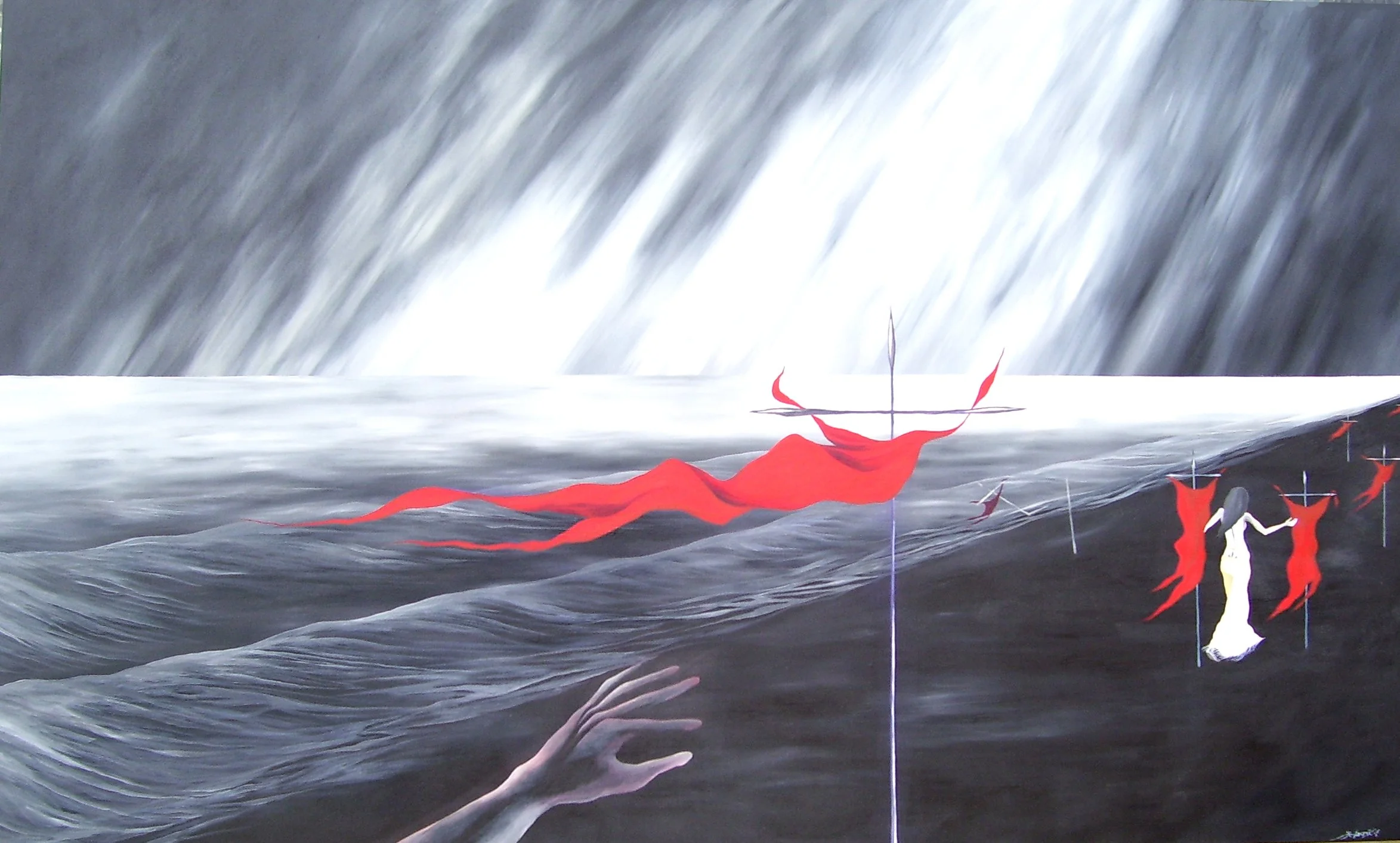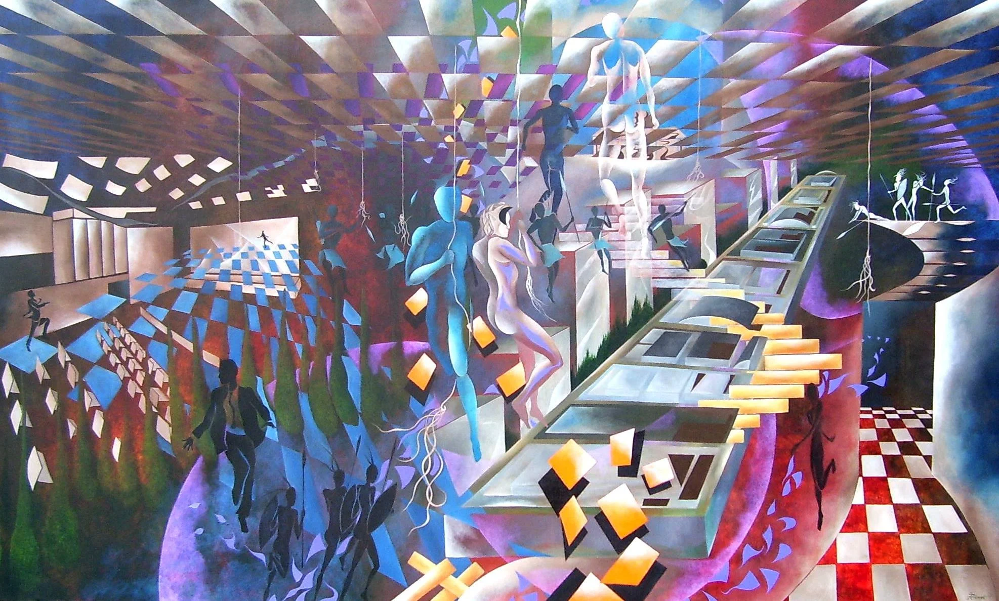 "When Dreams go off the Edge", 6' by 18'ft., acrylic/oil on canvas. R. Pilarczyk