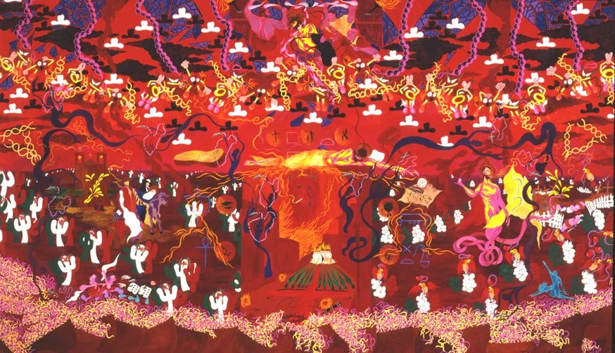 "The Messiah Returns to Capistrano" (an ode to Michelangelo’s Judgement Day), 6' by 14’ft., acrylic/oil on canvas, R.Pilarczyk