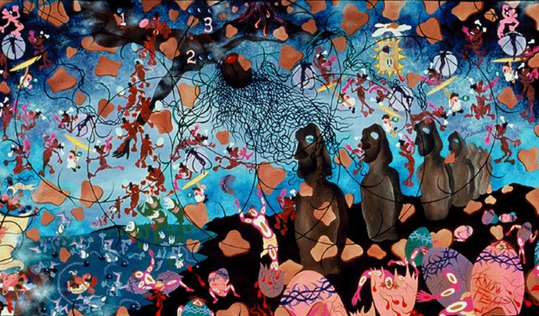 "Easter on Easter Island", 6' by 14'ft., acrylic/oil on canvas. R. Pilarczyk