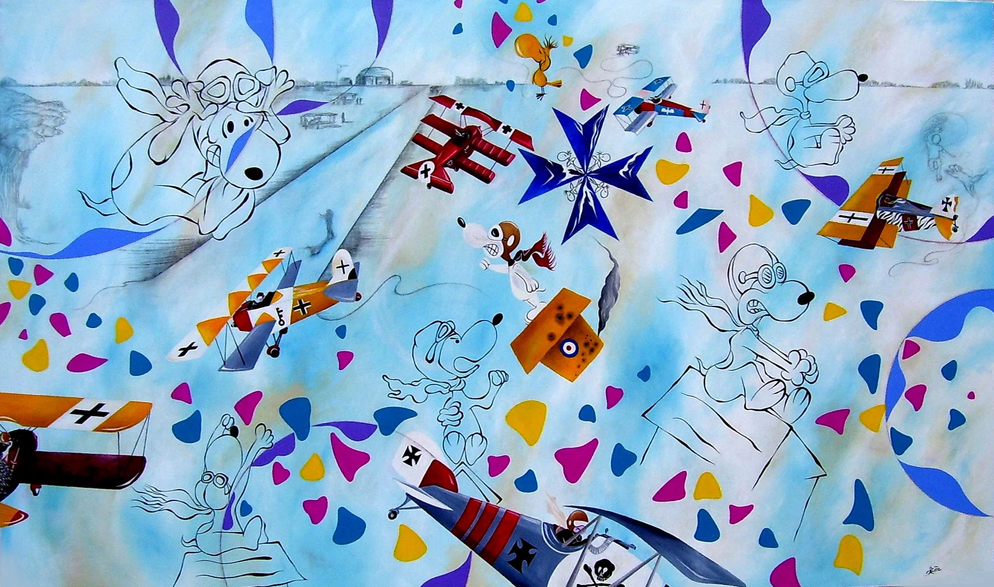 "Dogfight", 6' by 9'ft., acrylic/oil on canvas. R. Pilarczyk