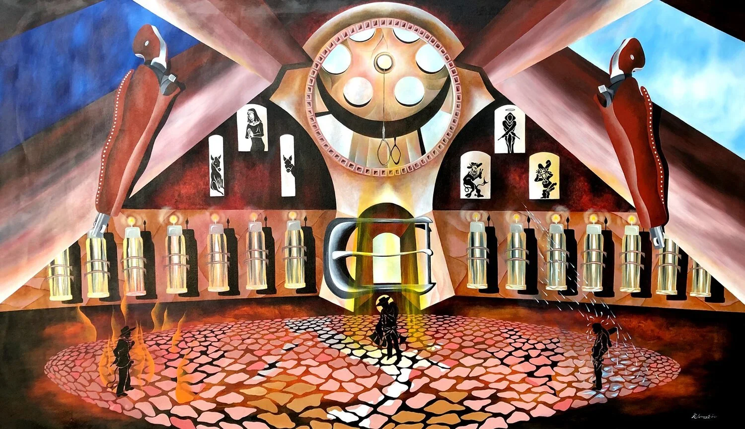 "Chapel of the Six Chamber", 6' by 9'ft., acrylic/oil on canvas. R. Pilarczyk