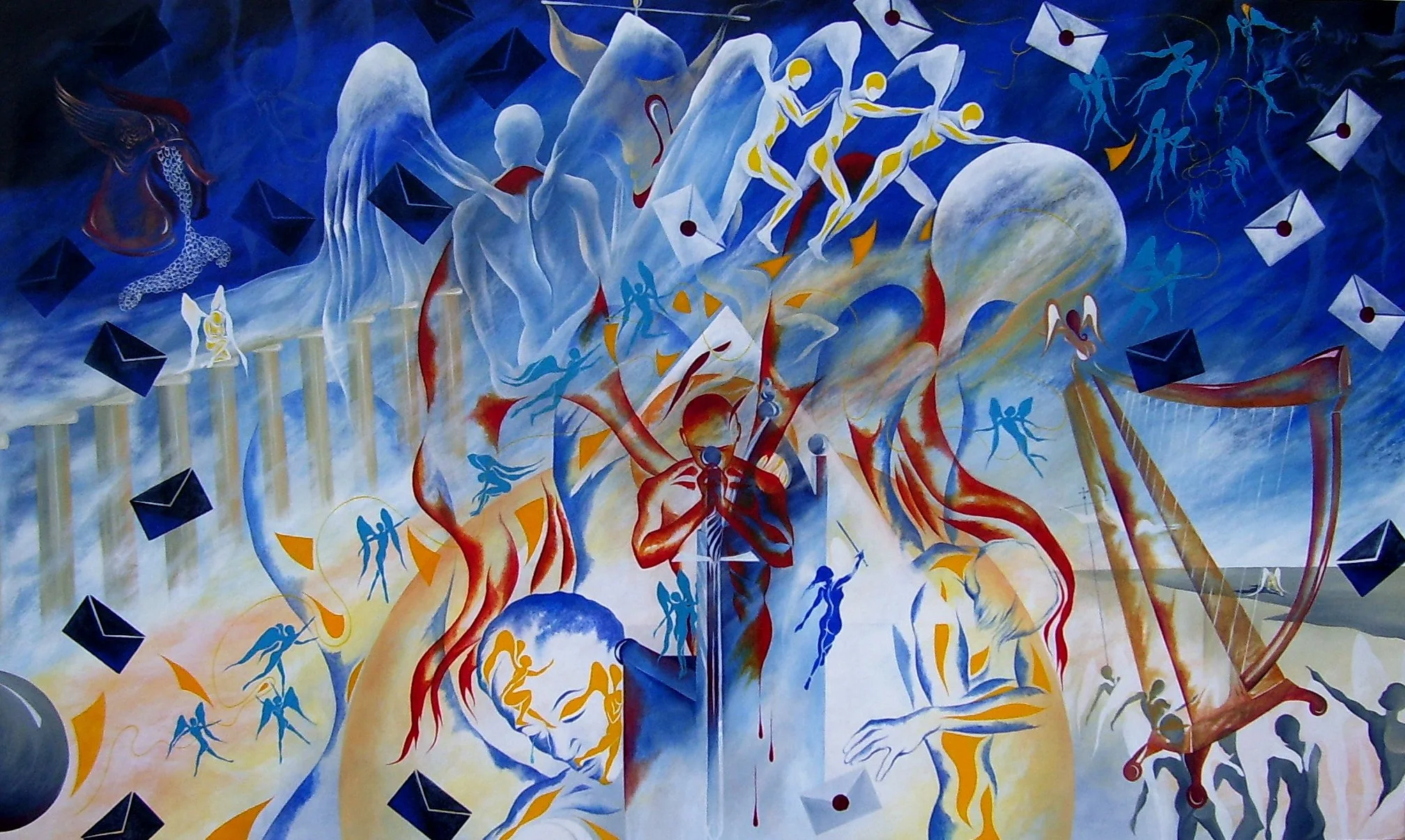"The Vision", 6' by 9'ft., acrylic/oil on canvas. R. Pilarczyk