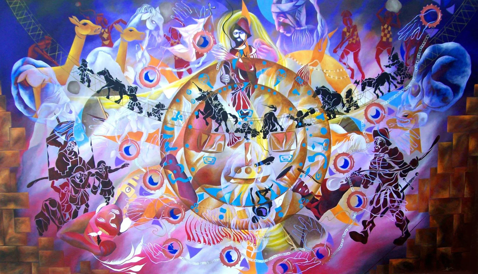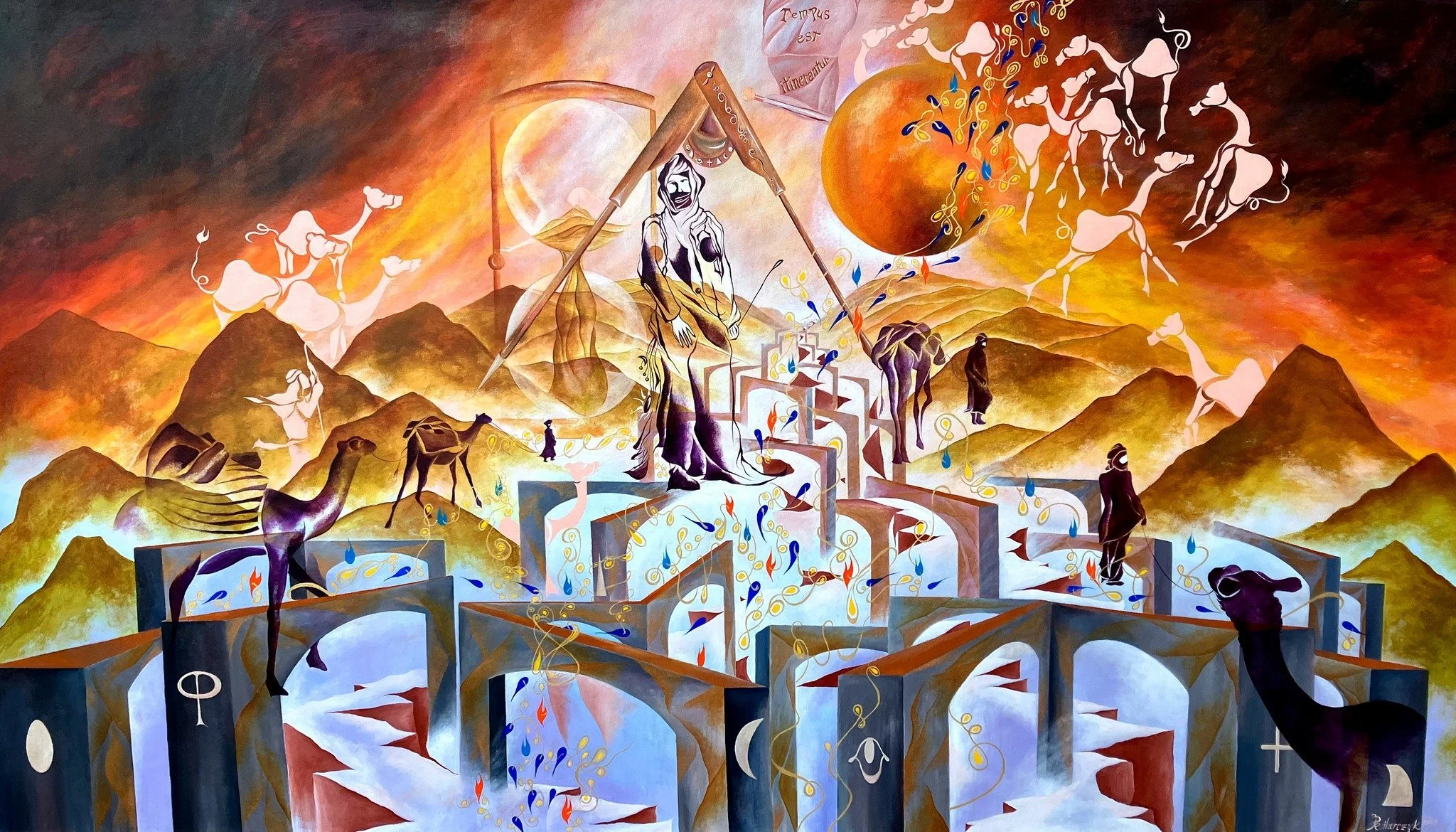 "The Mystical Twilight of the Mythical Caravans", 6' by 9' ft., acrylic/oil on canvas, R.Pilarczyk