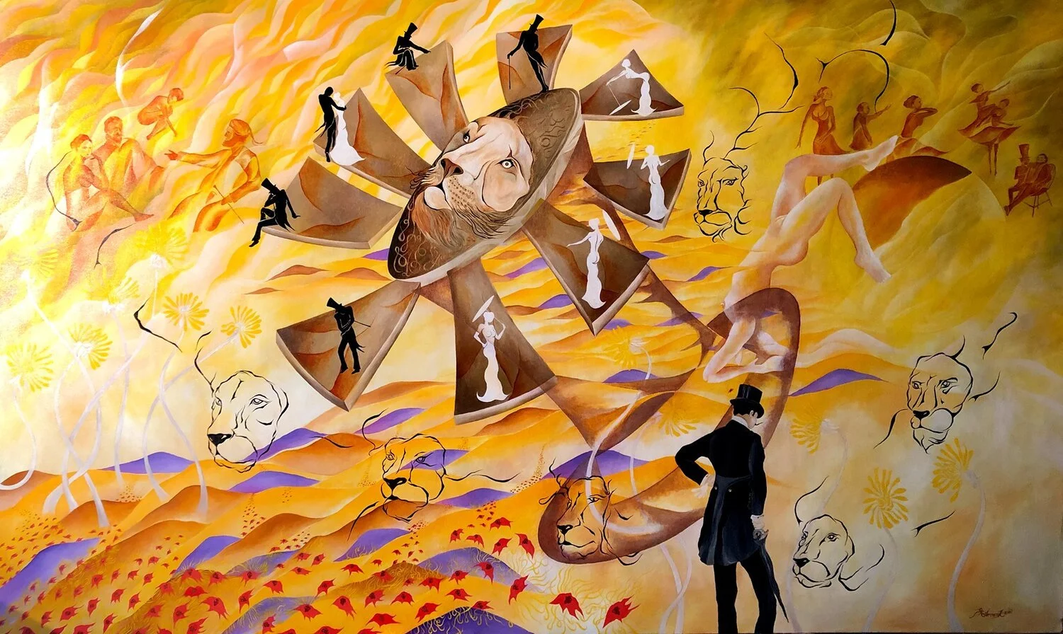 "Dandy of the Dandy Lions", 6' by 9'ft., acrylic/oil on canvas. R. Pilarczyk