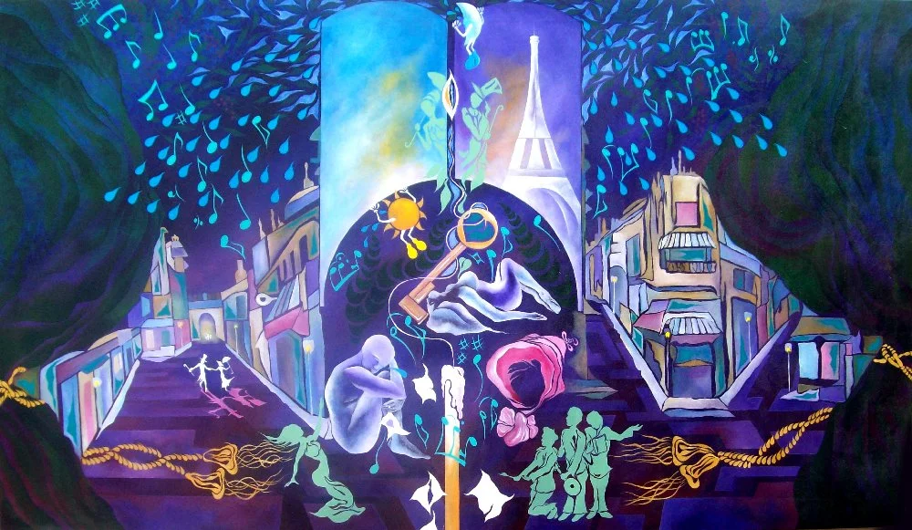 "La Bohème", 6' by 9'ft., acrylic/oil on canvas. R. Pilarczyk