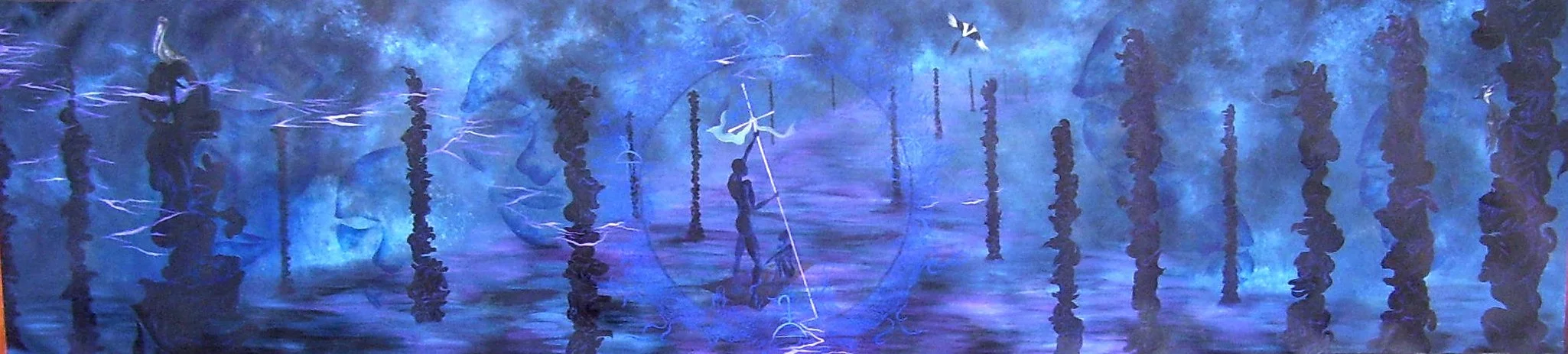 "Journey Down the River Morph", 4' by 20' ft., acrylic/oil on canvas, R.Pilarczyk