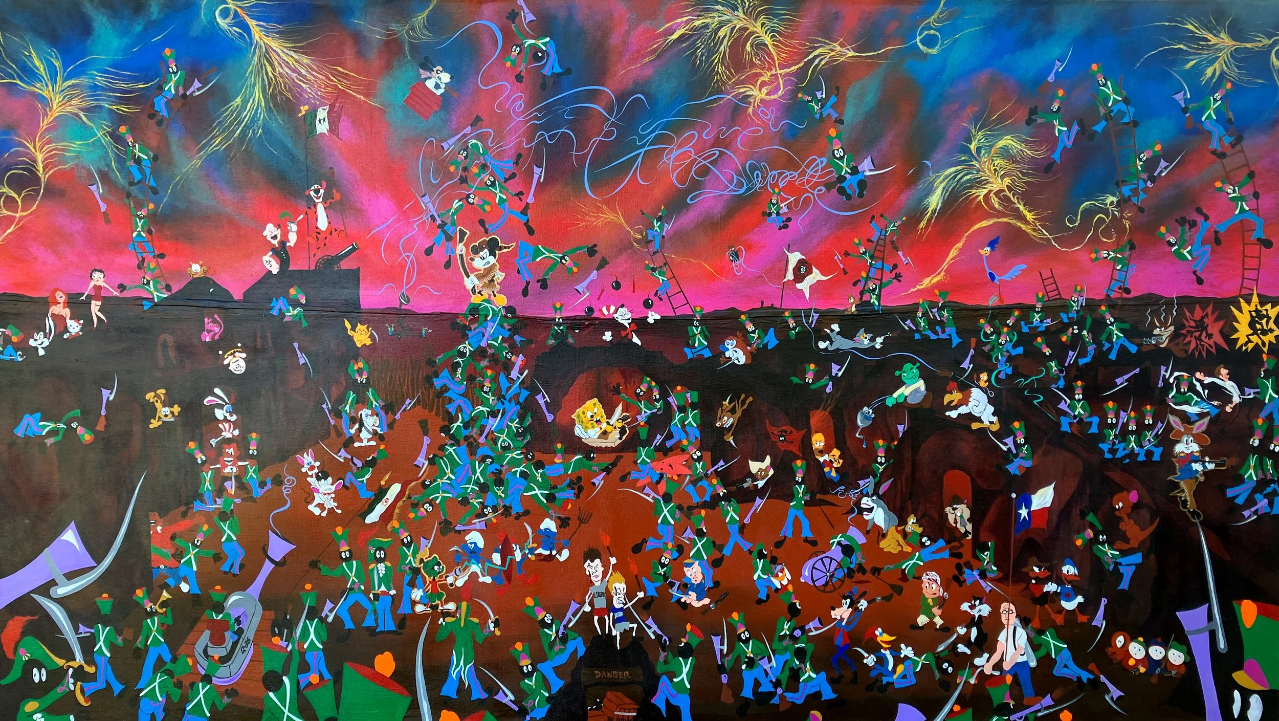 "War of the Worlds; an Alamo to Remember", 6' by 9' ft., acrylic/oil on canvas, R.Pilarczyk