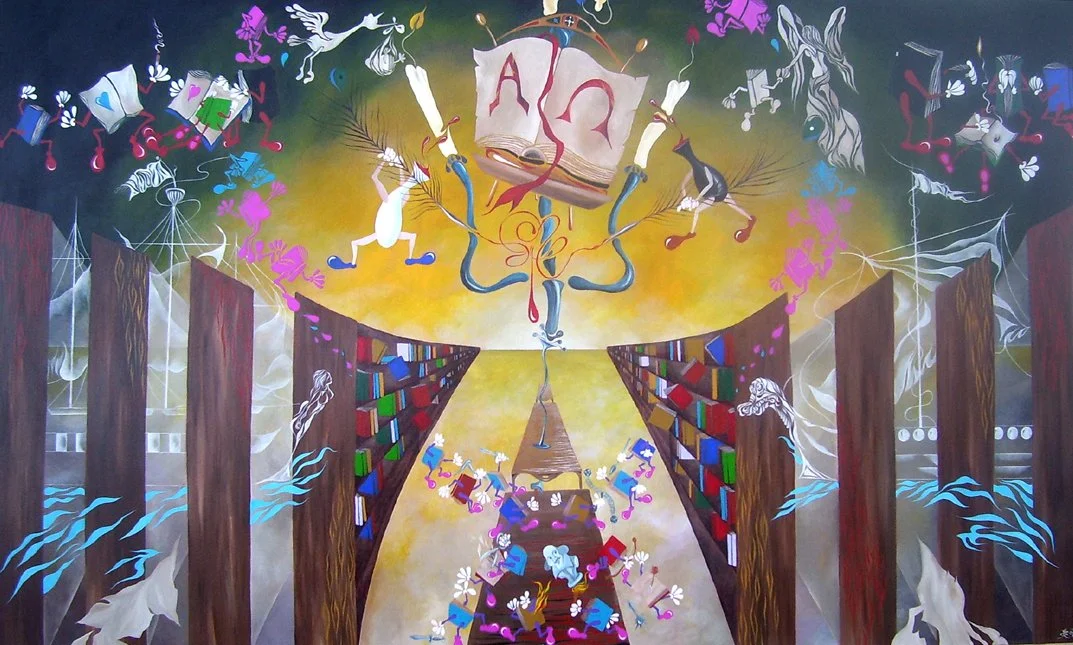 "The Book of Passion", 6' by 9'ft., acrylic/oil on canvas. R. Pilarczyk
