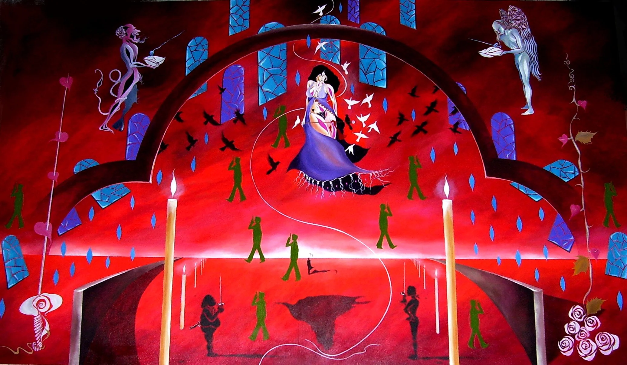 "The Velvet Curtain", 6' by 9'ft., acrylic/oil on canvas. R. Pilarczy